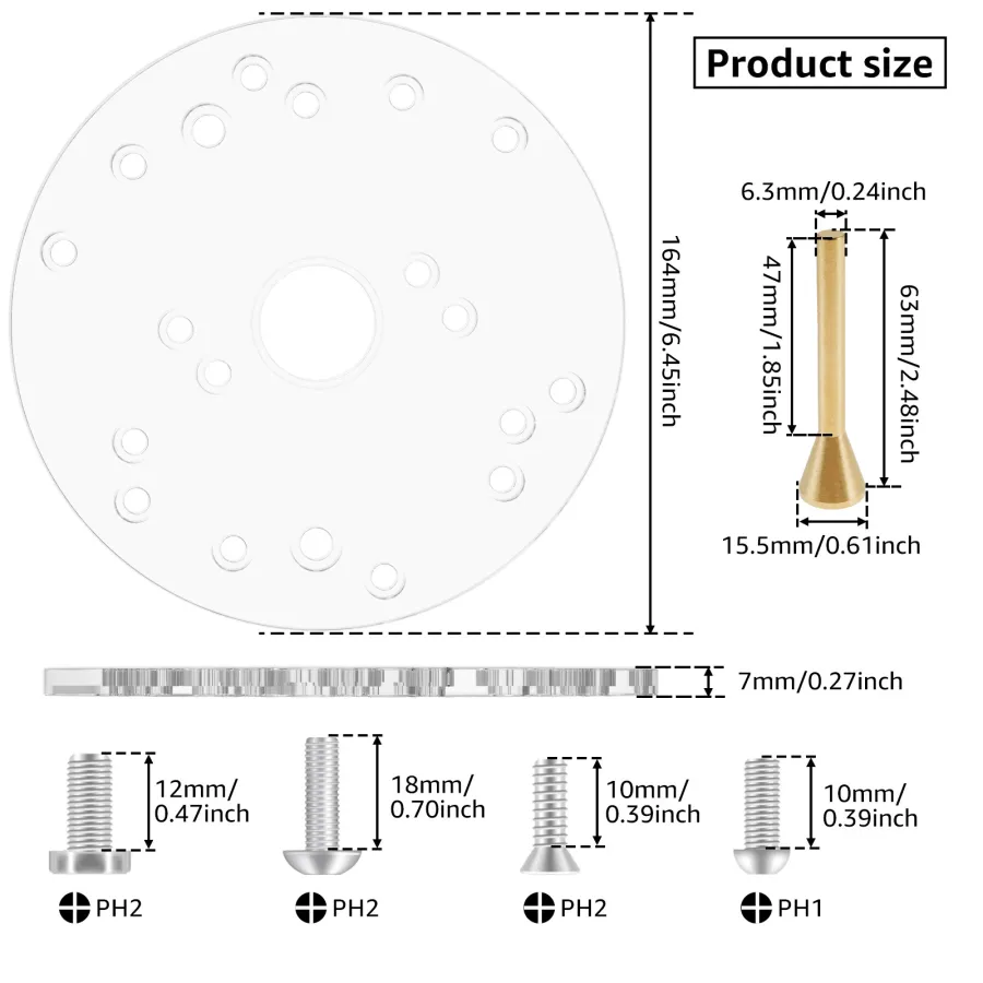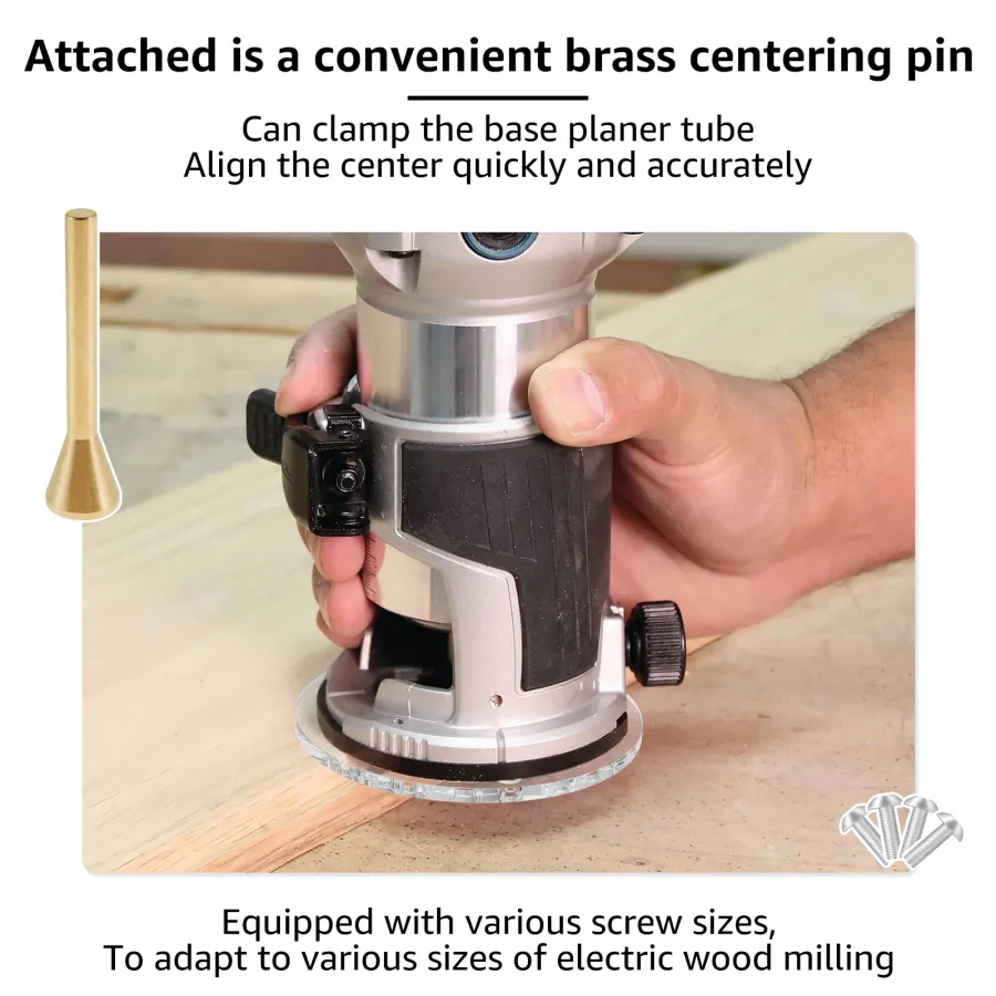 ➤[With Brass Centering Pin and Screw] The included convenient brass centering pin can quickly and accurately align the center of the base router collet. This package comes with a variety of screw sizes to accommodate various router sizes