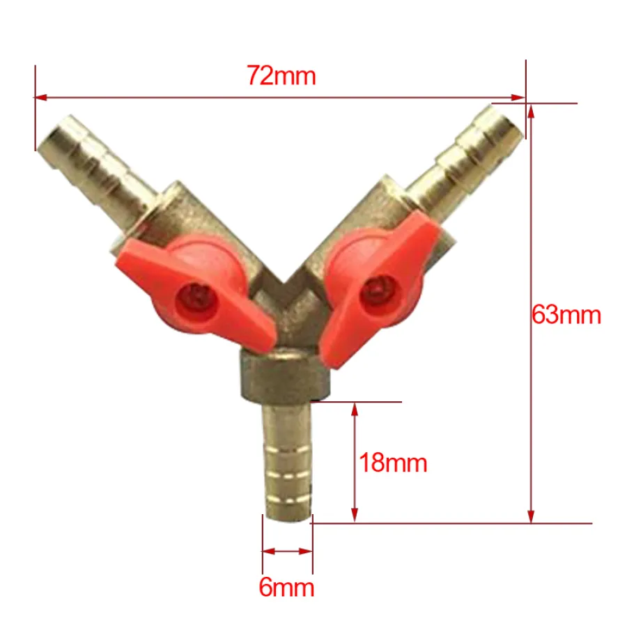 6 8 10 Mm Hose Barb Y-type All-copper Pagoda 3-way Brass Cutoff Ball Valve Fittings Fittings Adapter for Fuel, Water, Oil, Air