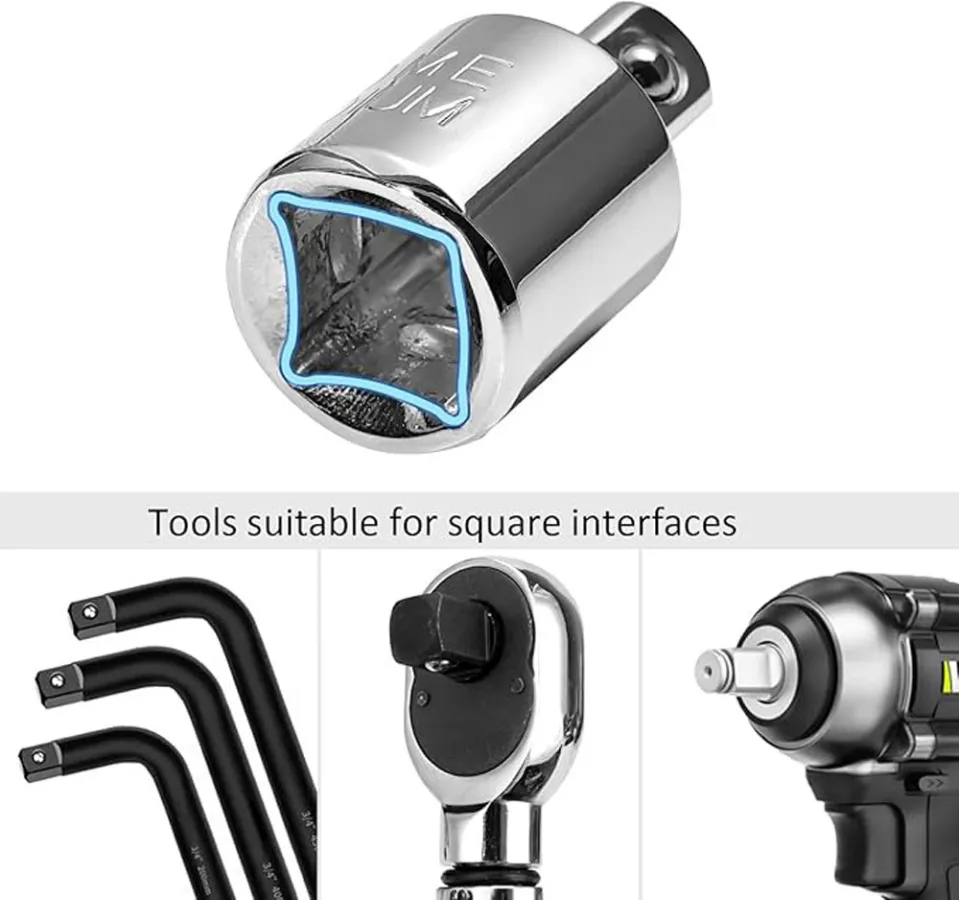 Professional Quality: Socket adapter is made of premium heat-treated Chrome Vanadium Steel (Cr-V) to withstand extreme torque and repetitive impacts without cracking or deforming. Built for professional daily use.