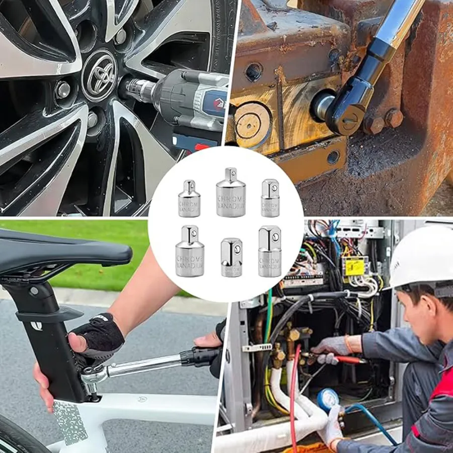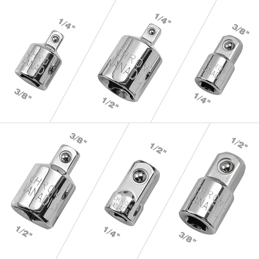 6 PCS Socket Adapter 1/4" 3/8" 1/2" Adapter Set Chrome Vanadium Steel Ratchet/Socket Conversion Kit for Automotive Maintenance