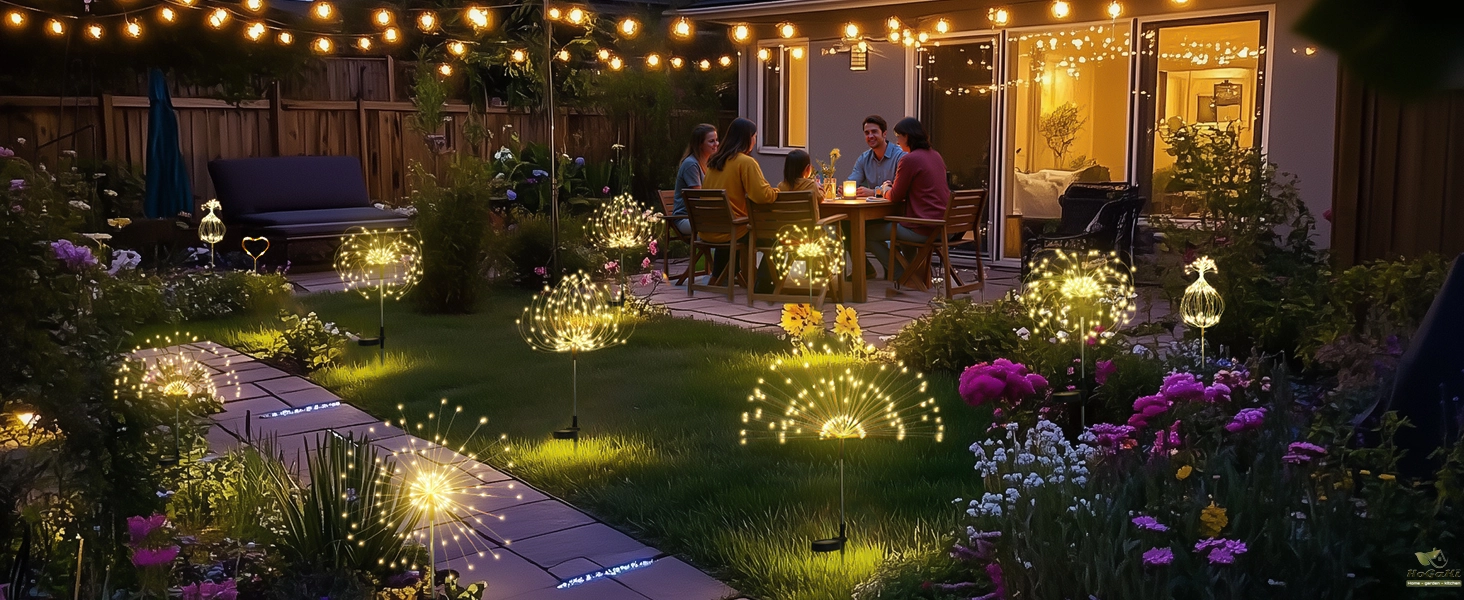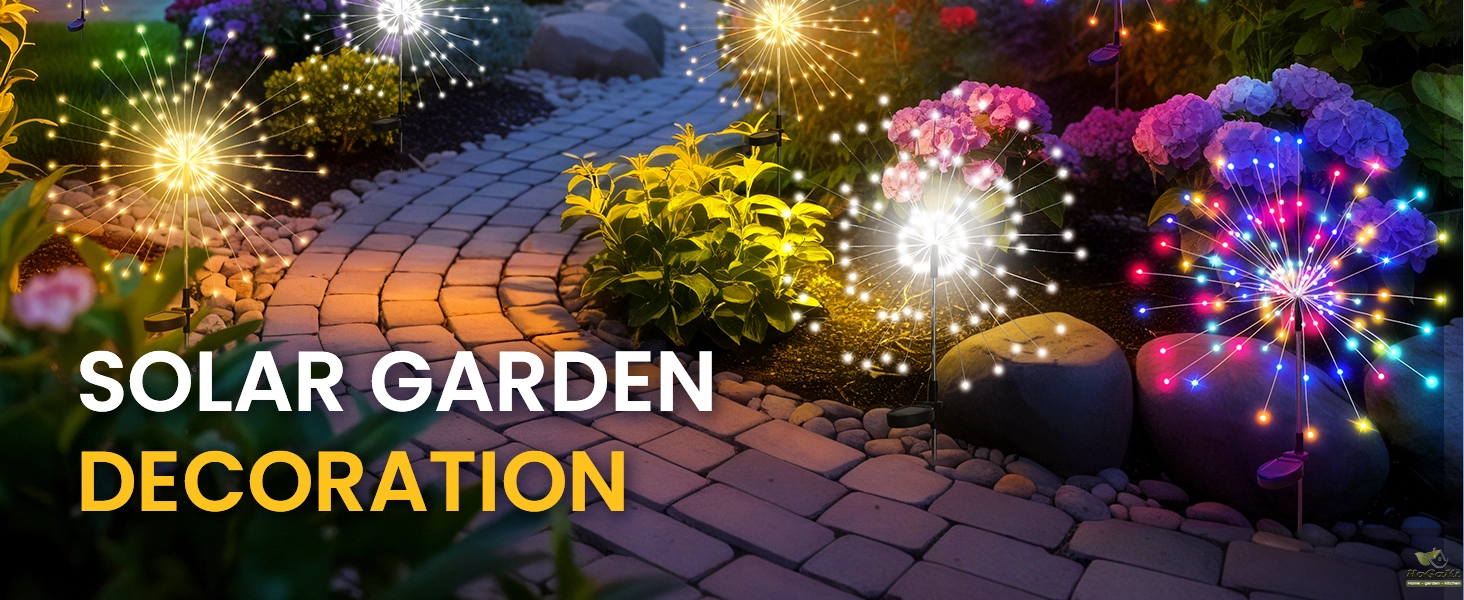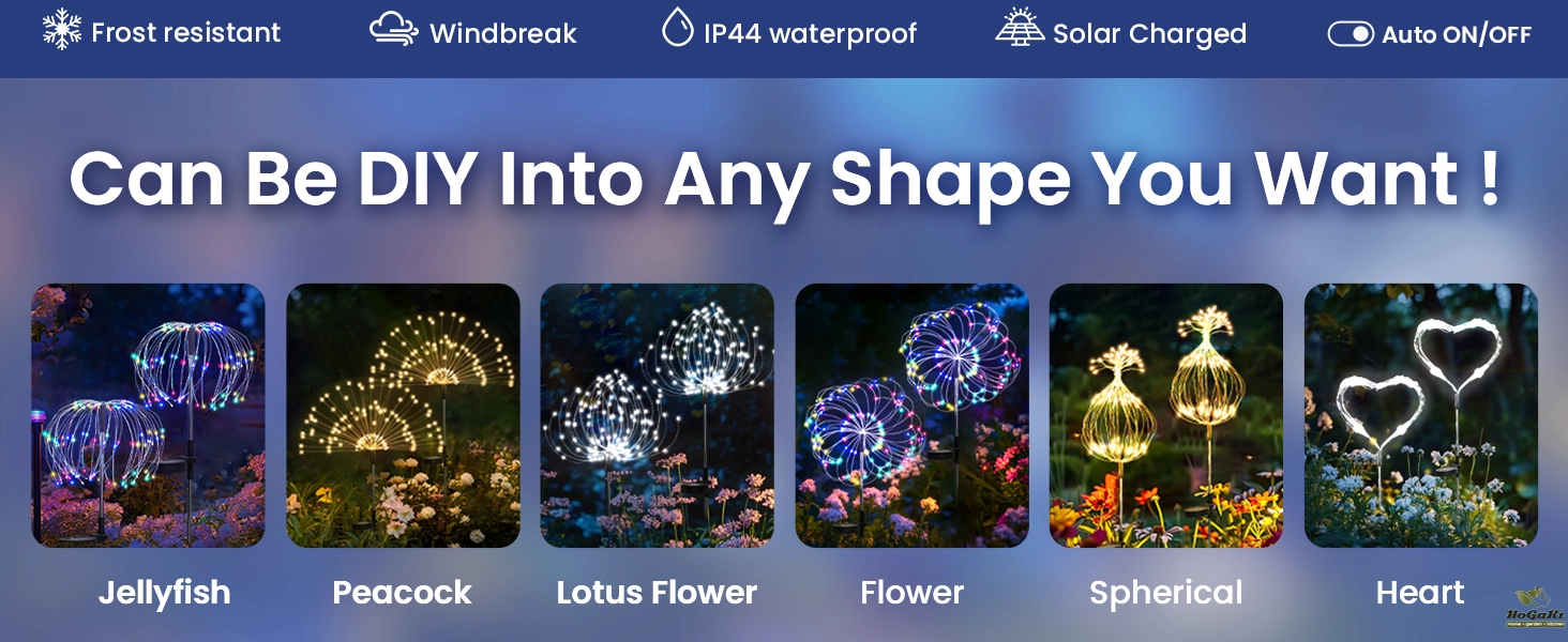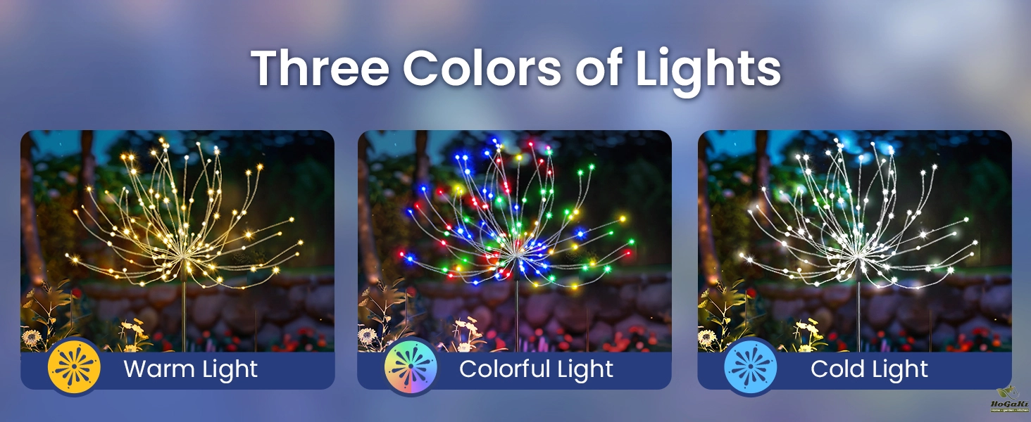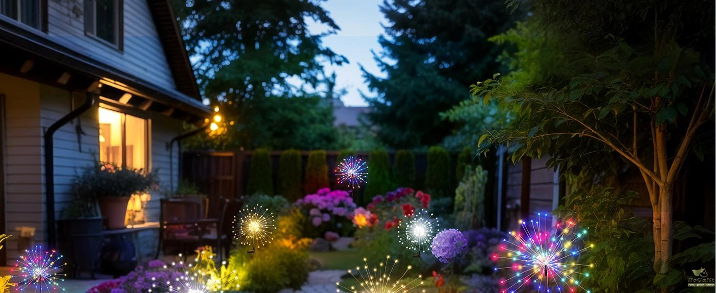 Colorful Display, Festival Atmosphere Maker:Featuring solar garden decor lights transmitted through fiber optics, outdoor solar lights create a mesmerizing fireworks effect. Perfect for setting the mood for holidays like Halloween, Christmas