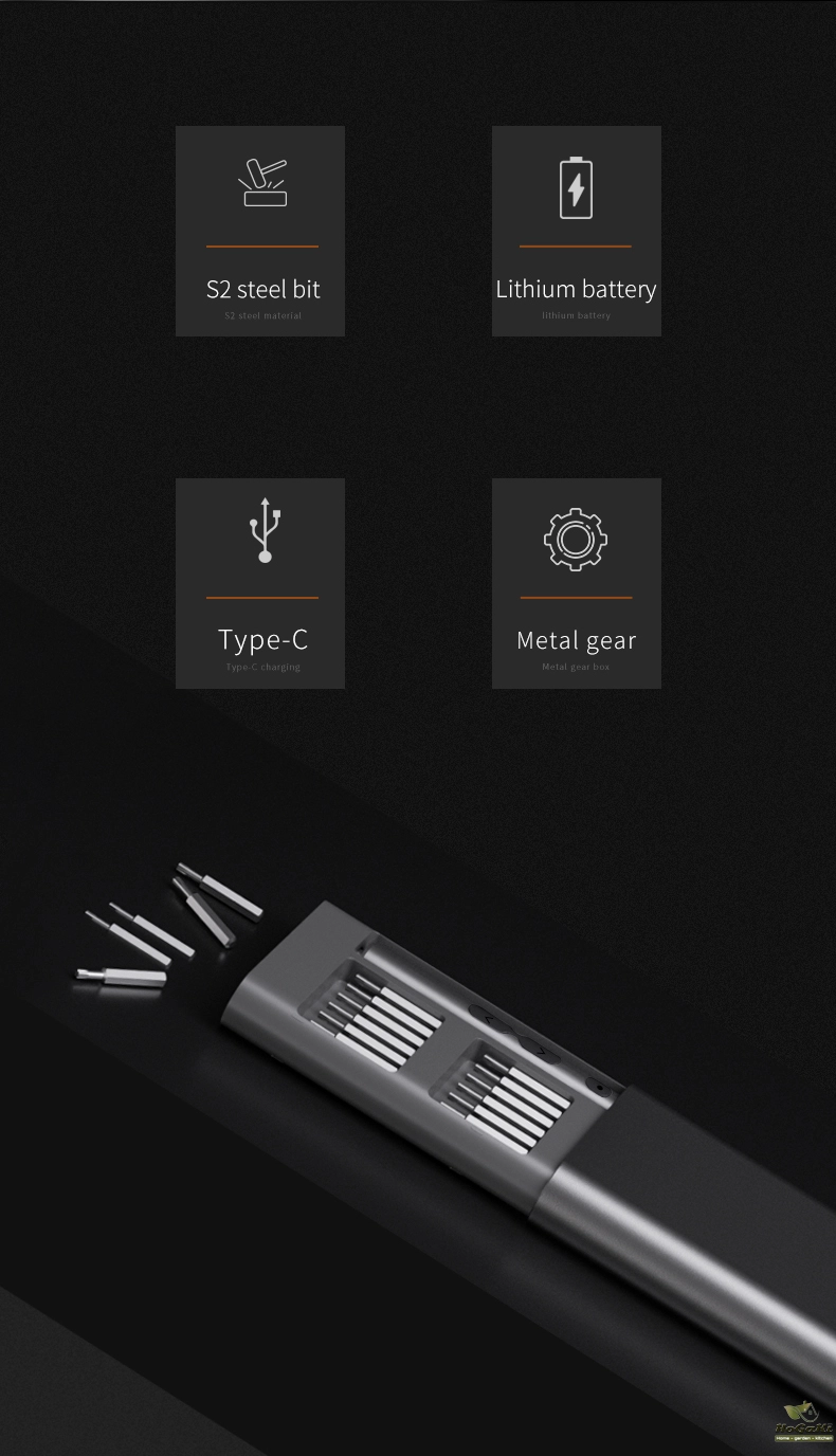 ● Small size, built-in rechargeable lithium battery, long service life and 400+ precision screws can be hit when fully charged.