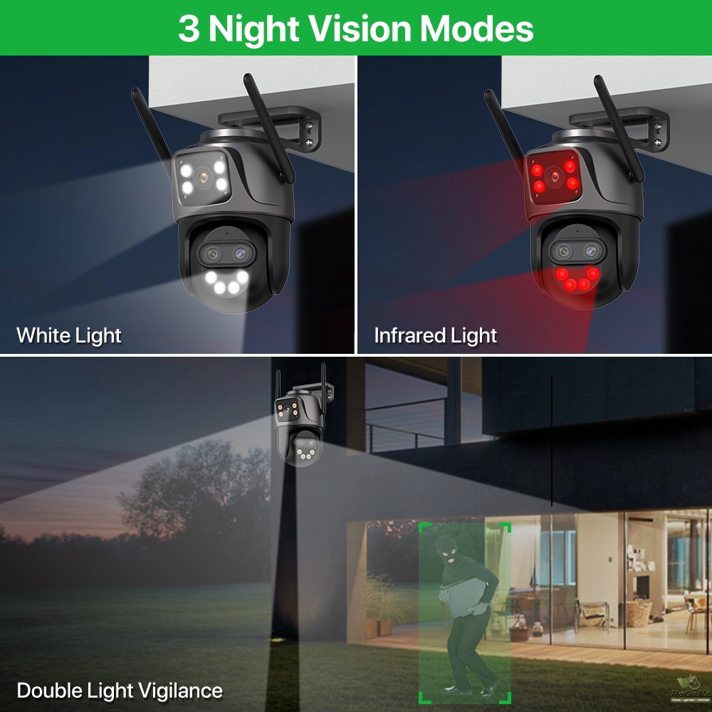 - Dual light source design, built-in infrared light + white light, night vision infrared and night vision full color can be set;