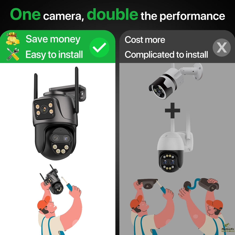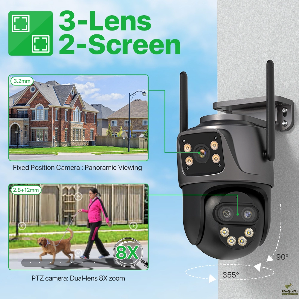 - Three-lens dual-sensor dual-screen, wide-angle Viewing + Long Distance Viewing to achieve clear monitoring from far and near;