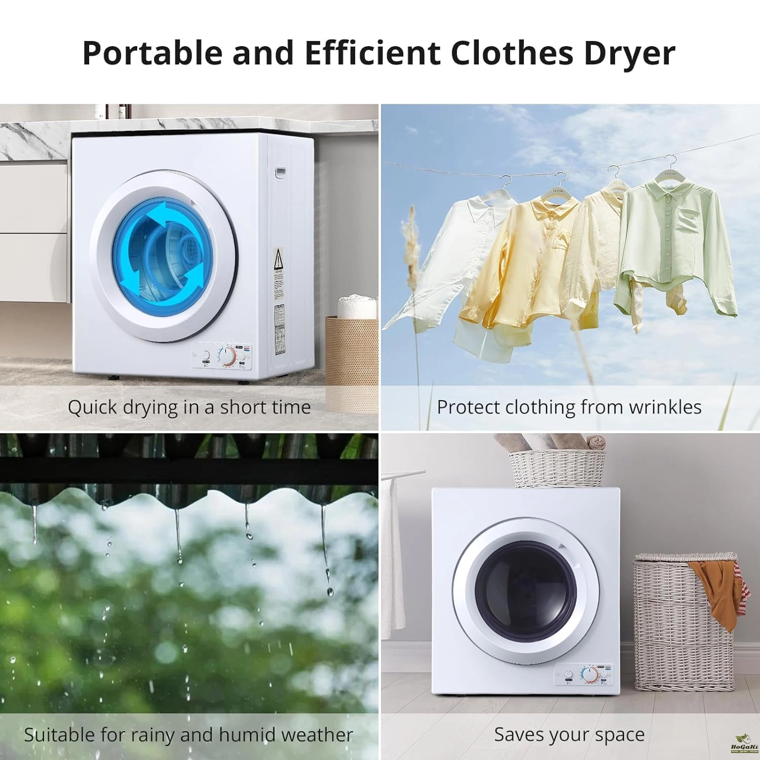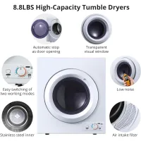 POWERFUL DRYER PERFORMANCE: This compact dryer has an internal capacity of 3.5 cu ft., allowing it to accommodate up to 13.2 pounds of wet clothes. With a maximum temperature of 140°F, it efficiently dries various types of garments for the entire family. No worry about clothes drying even though it was rainy. Our dryer is also equipped with a sensor drying function that automatically adjusts the heat for more efficient drying. Note: For best results, start use after turn -drying.