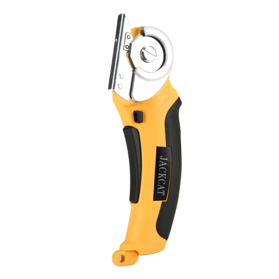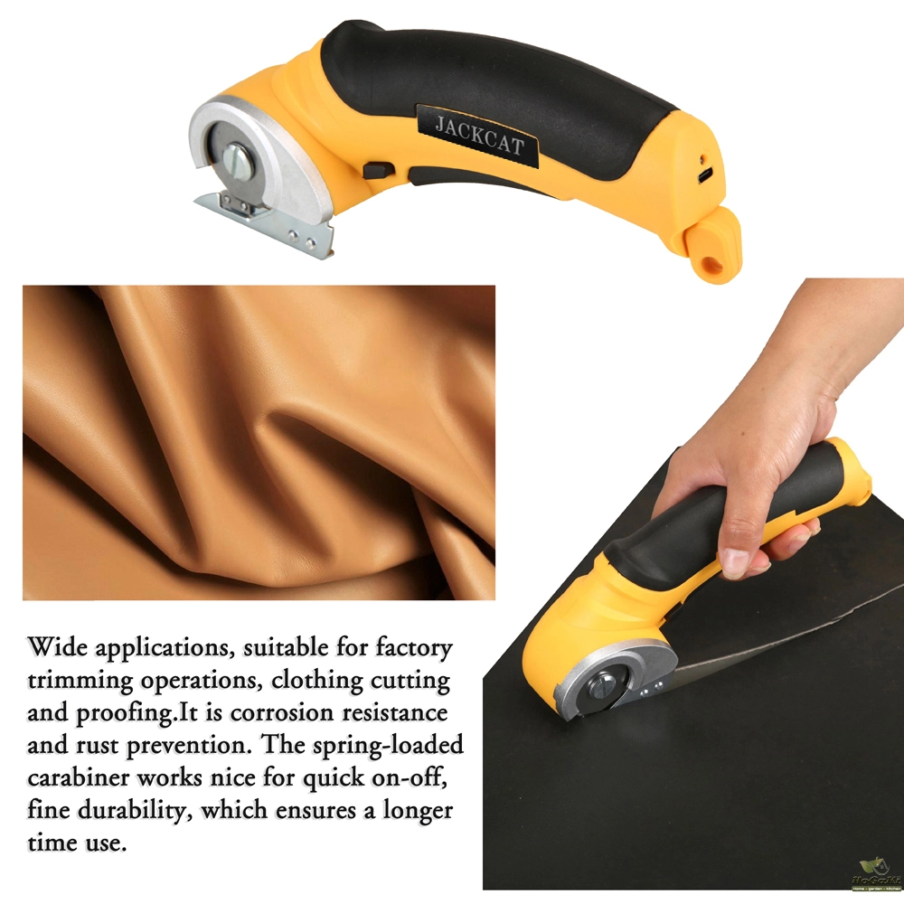 This electric cloth cutting machine adopts brush motor, quick-starts, timely braking, smoothly speed regulation in a wide ranges, relatively simple control the circuit and so on. Equipped with a safety lock switch, both the trigger and the lock-out switch need to be pressed to make it operate, which can effectively avoids accidental starts. Wide applications, suitable for factory trimming operations, clothing cutting and proofing. Perfect for cutting various types of cloth, such as 3mm fabric and leather, 6mm paperboard, plastics mats, carpets, felts, and etc..
