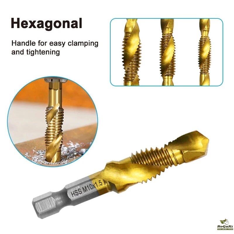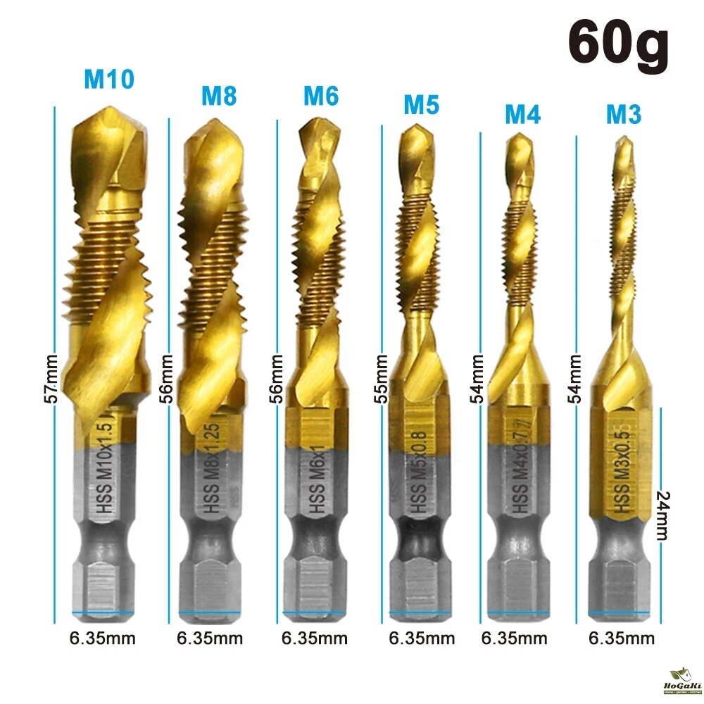 • 6pc high-speed steel 4341 titanium plated composite tap drill and tap integrated machine tap open and chamfer tool set :This product comes with 6 pieces of high-speed steel 4341 titanium plated composite tap drill and tap integrated machine tap open and chamfer tool set, making it a comprehensive solution for all your drilling needs.