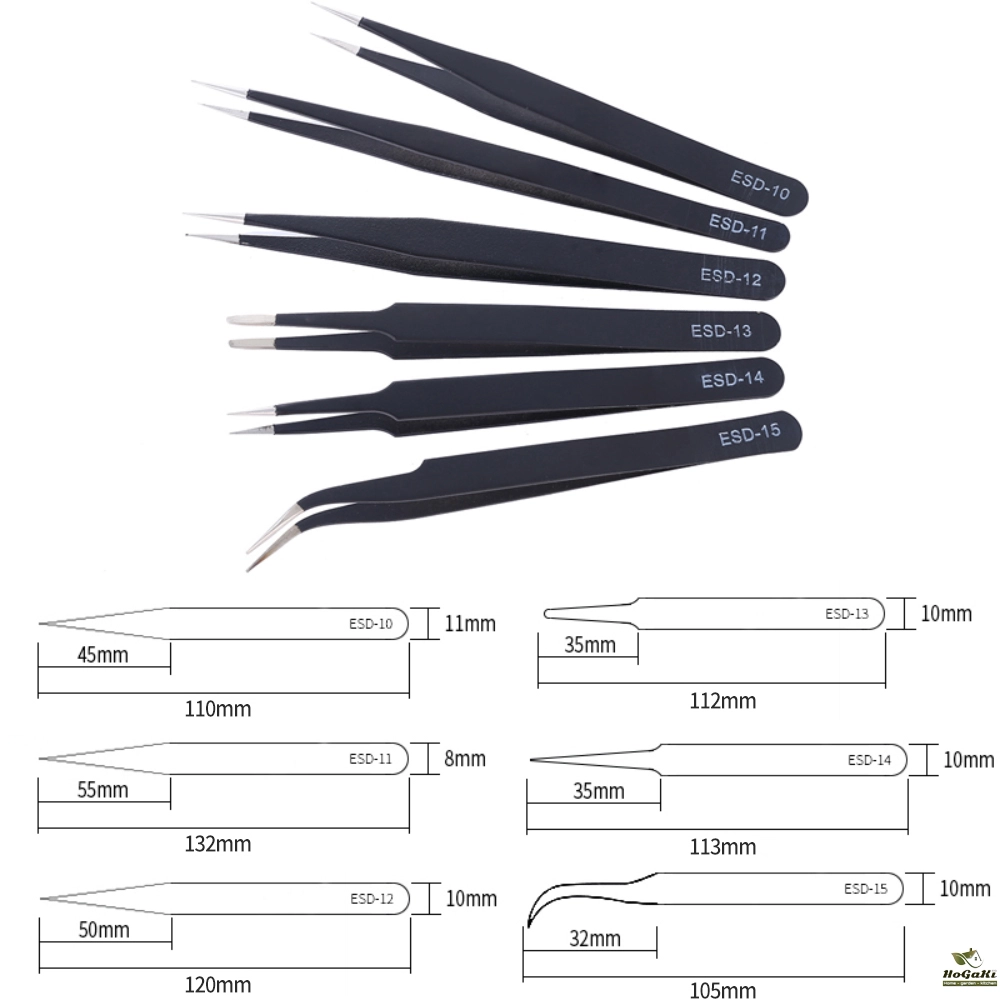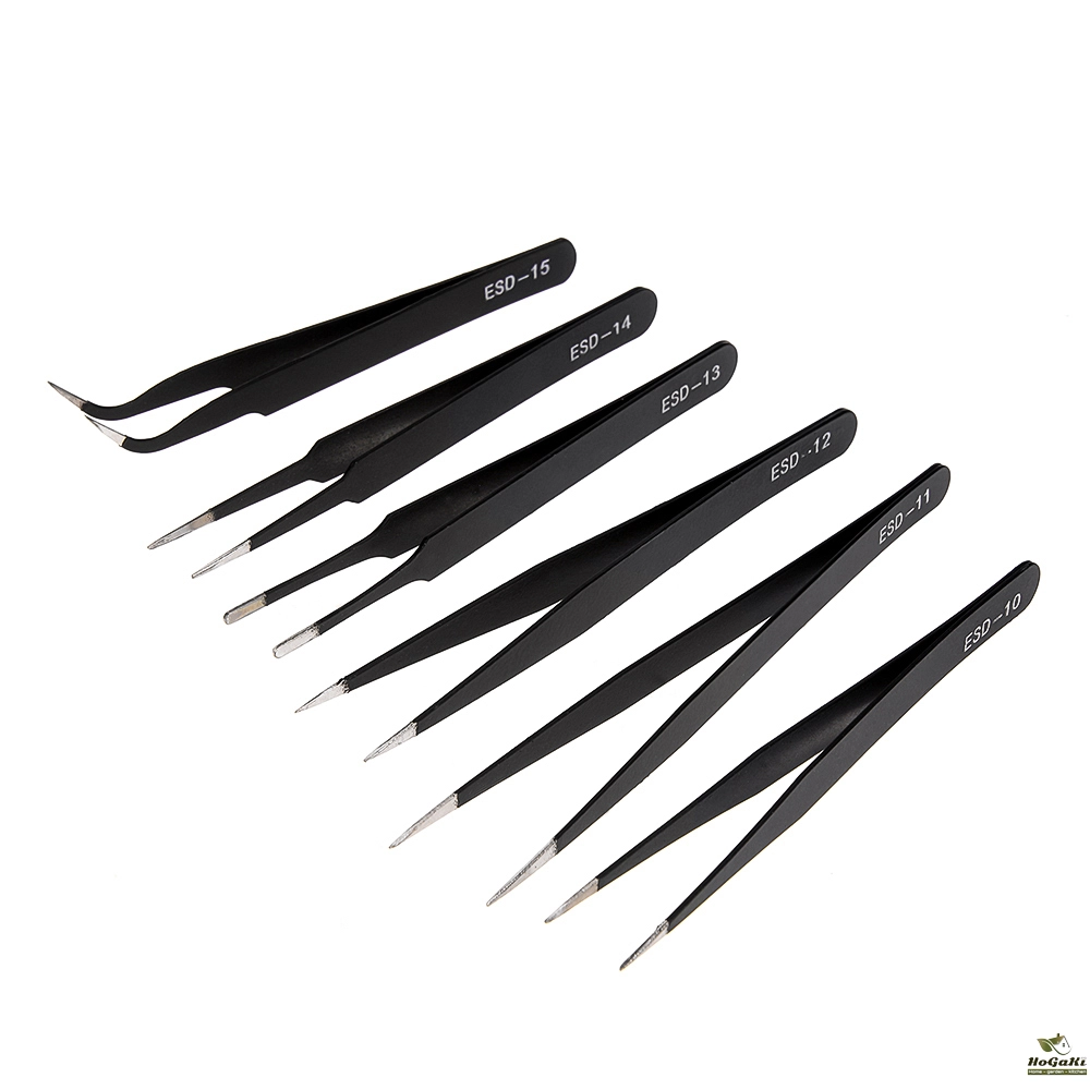 Precision Tweezers Set ESD Anti-Static Stainless Steel Tweezers Repair Tools for Electronics Repair Soldering Craft