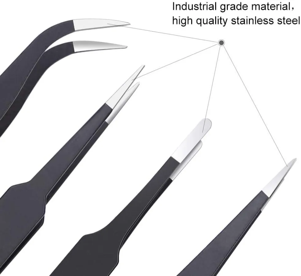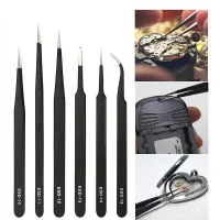 2pcs Stainless Steel Precision Tweezers, Color Scrapbook , Straight And Curved Head , Pink/Blue/Purple/White/Bla
