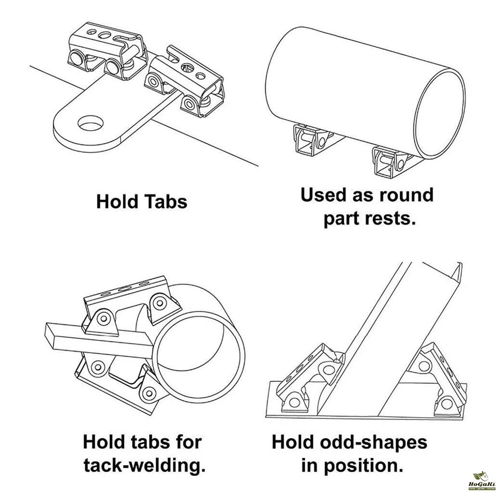 *Steady small parts, such as: bolts, nuts, and thin plates for tack welding at odd angles with full welding clearance
