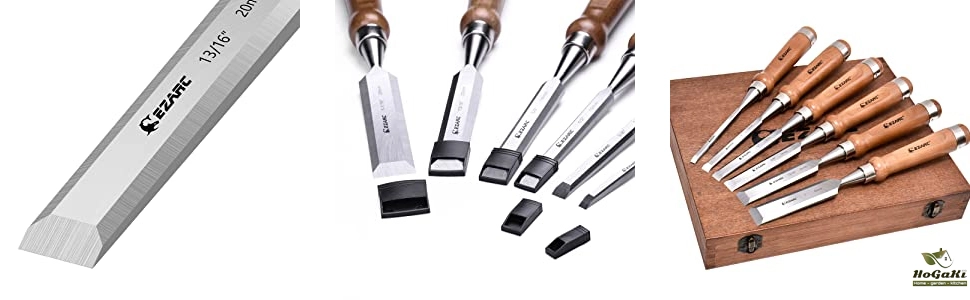 ➤ Professional Design: EZARC wood chisels are positioning professional users for any challenging woodworking projects. 6 piece sturdy, well-made carving blades include 1/4”(6mm), 3/8”(10mm), 1/2”(12mm), 5/8”(16mm), 13/16”(20mm), and 1”( 25mm) with 12-month quality guarantee.