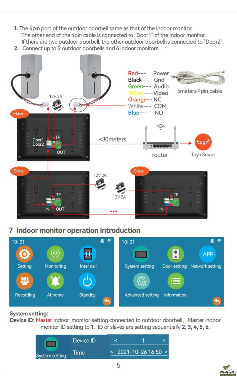 Multiple Intercom: doorbells can be connected with Multi indoor monitors