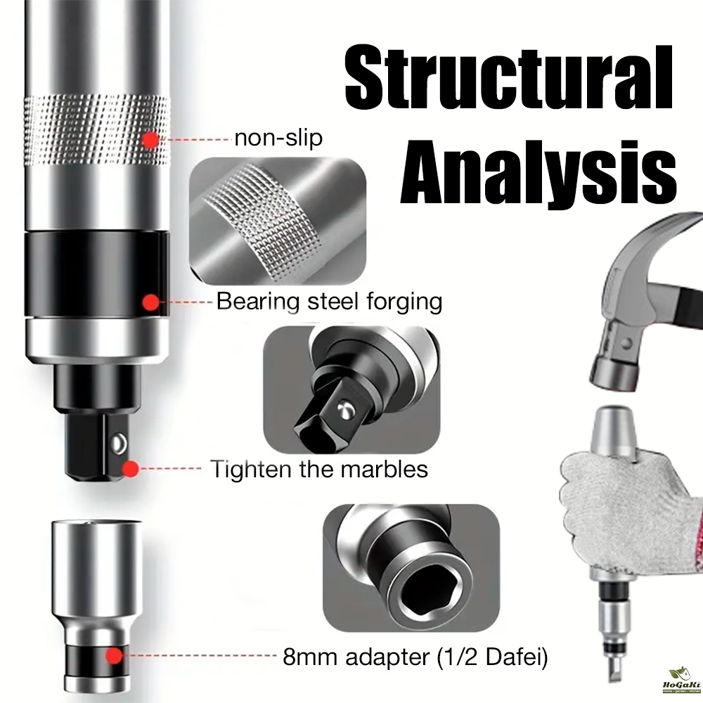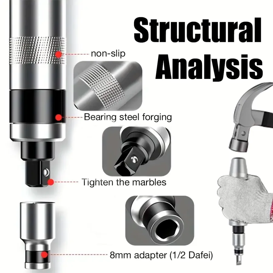 Crafted from premium alloy steel, this impact screwdriver withstands rugged use with a 1/2'' bit adapter. Its robust, anti-shock handle is built for heavy-duty environments, ensuring longevity.