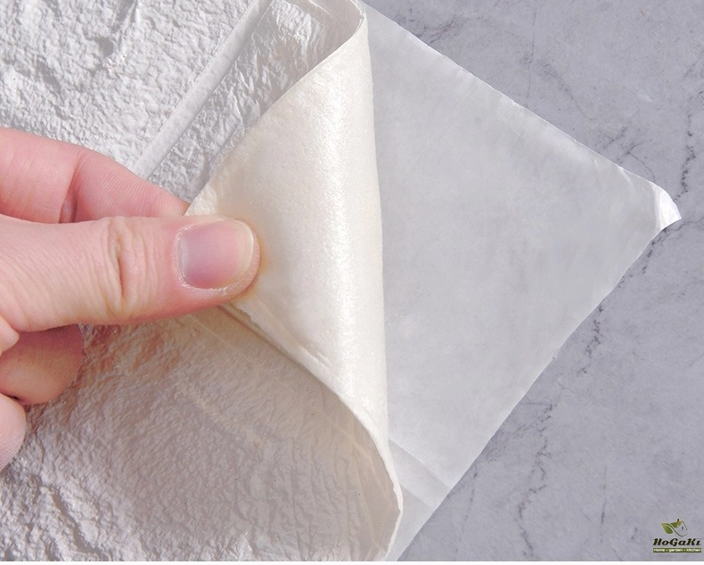 2. Peel off the glue film and stick the wallpaper to the surface.