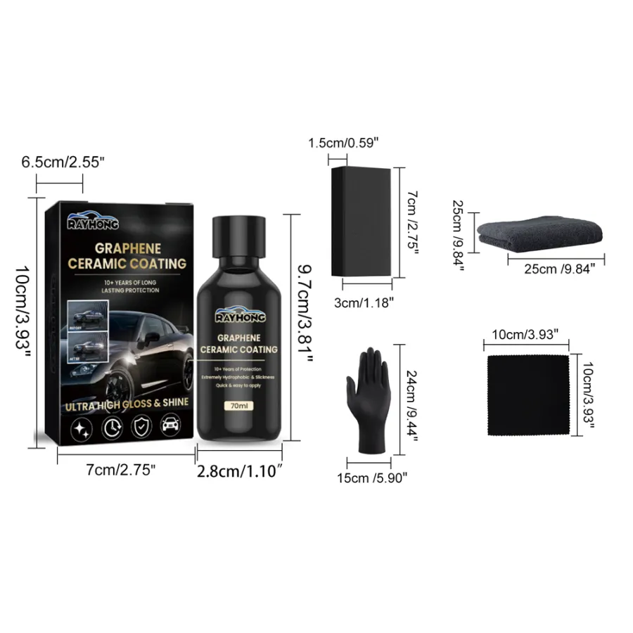 1. Advanced Graphene Technology: Leverage the cutting-edge strength and durability for your vehicle with our graphene ceramic coating, engineered with advanced graphene technology. This innovative formula is designed to enhance the hardness and resilience of your car's coating, offering superior protection against the elements.