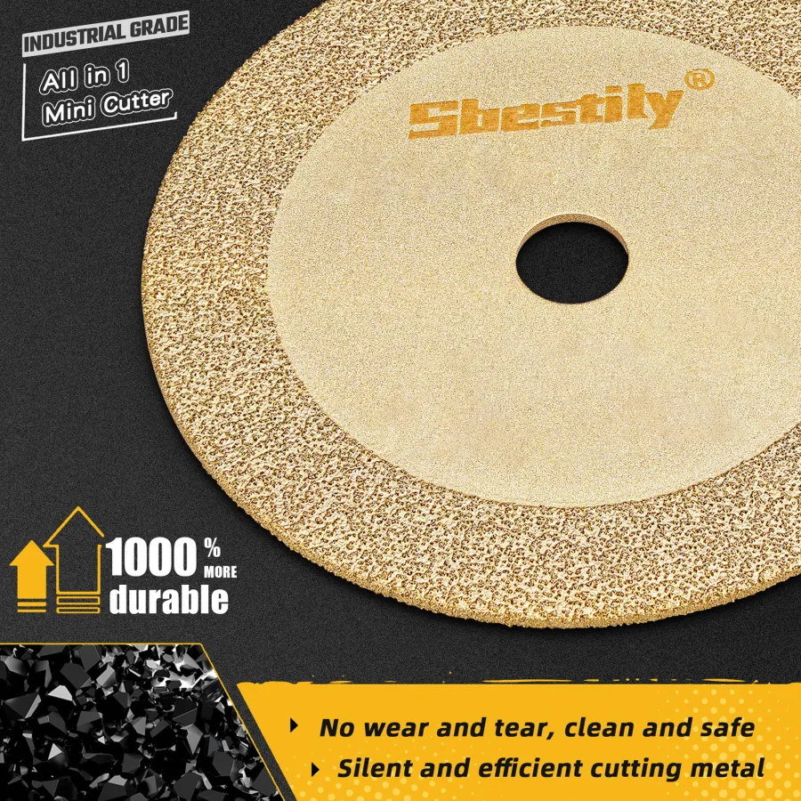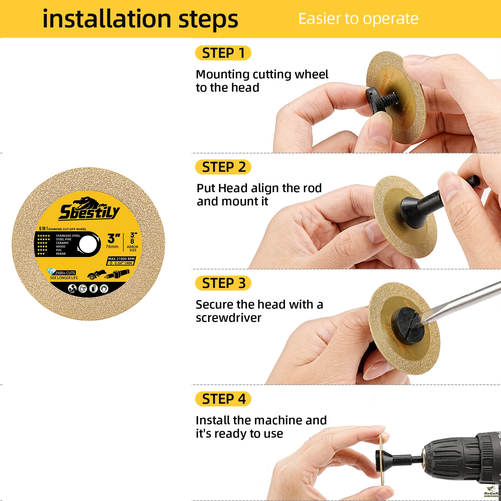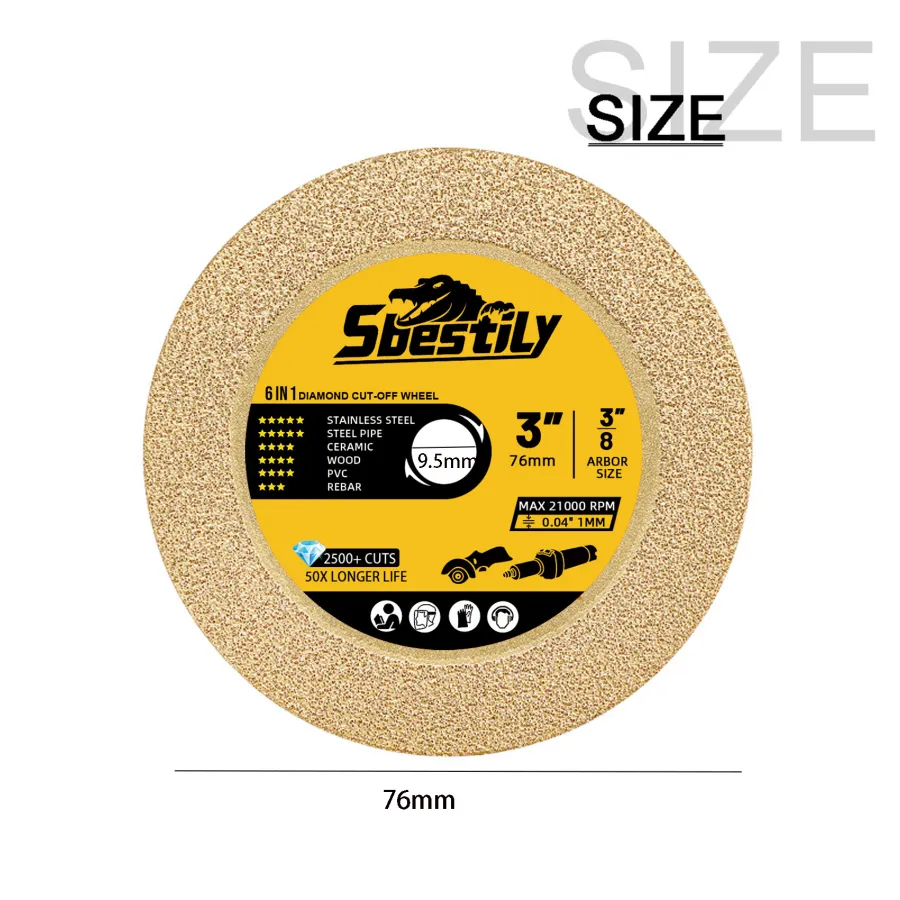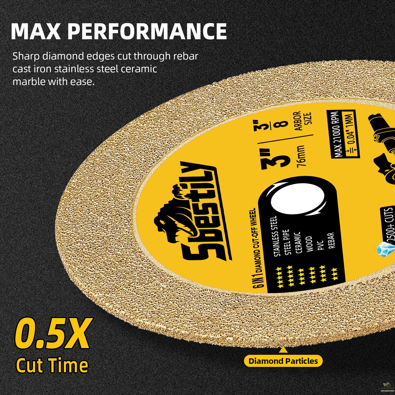 -- The 3-inch die-cutting wheel is designed for cutting steel, bronze, brass, nuts, bolts, screws, glass ceramic tiles and non-ferrous metals with a powerful cut.