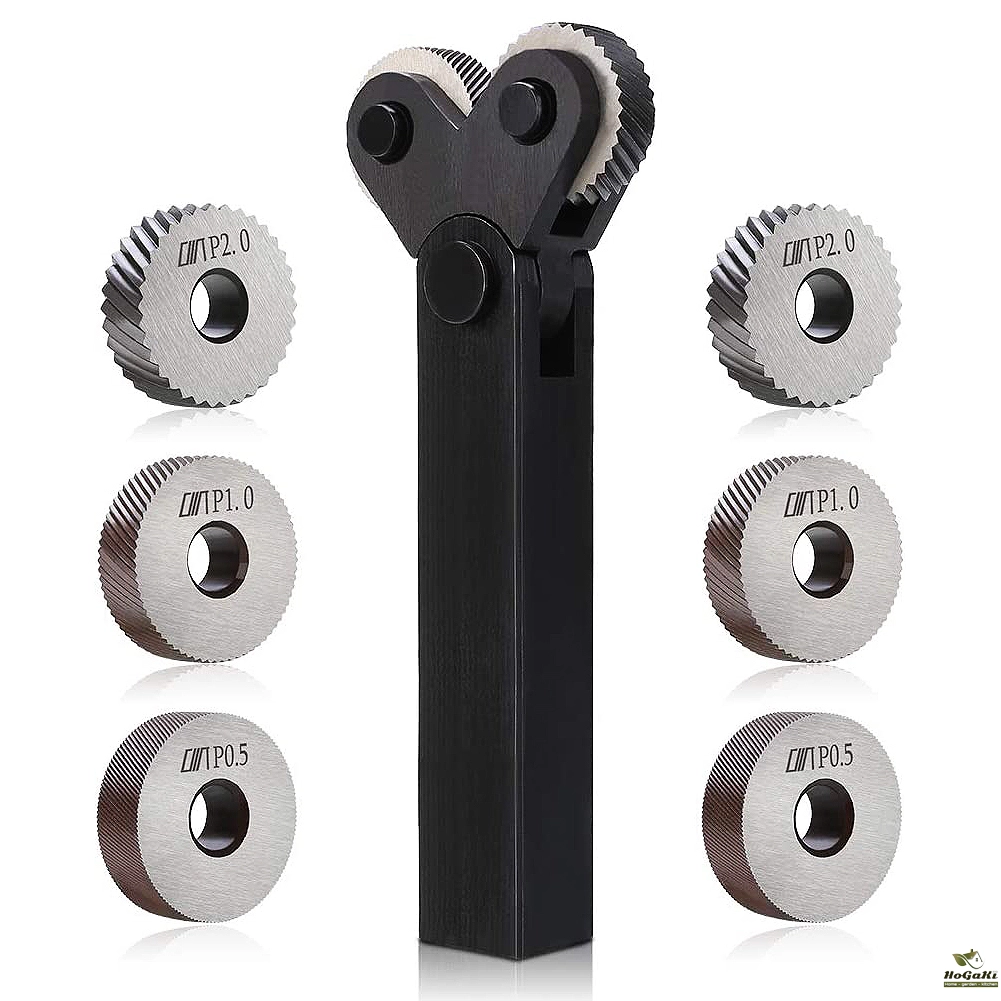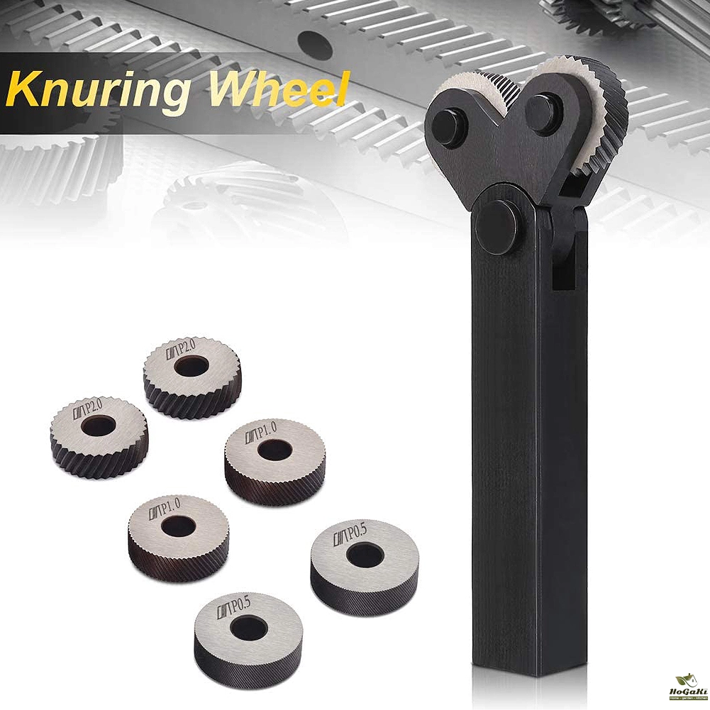 7PCS Knurling Tool 0.5/1/2mm Diagonal Dual Wheel Linear Knurl Set Steel Lathe Cutter Wheel Knurling Tool Holder Hob Set