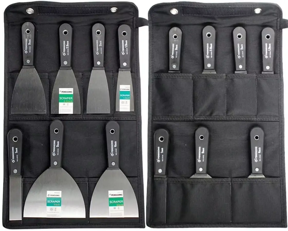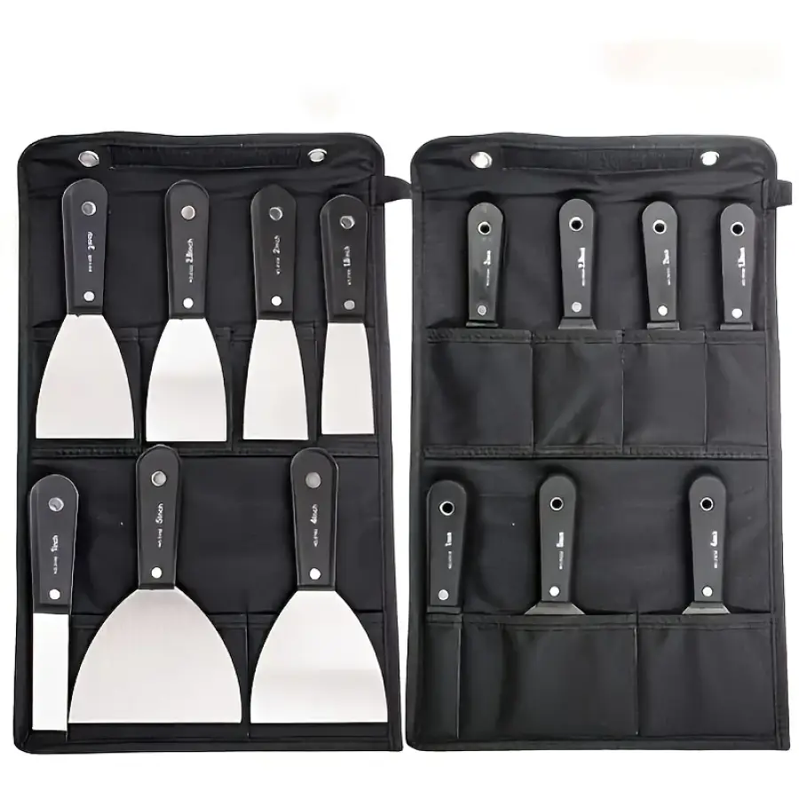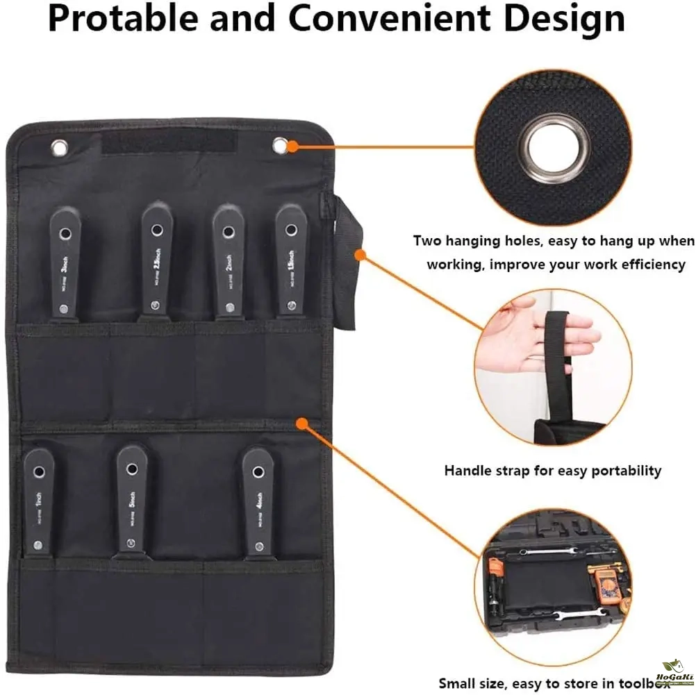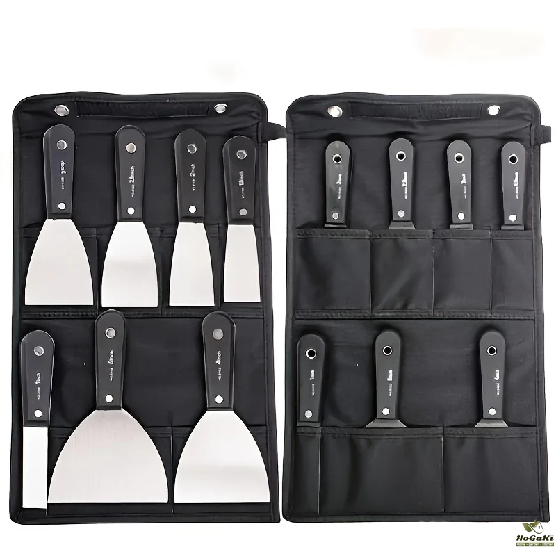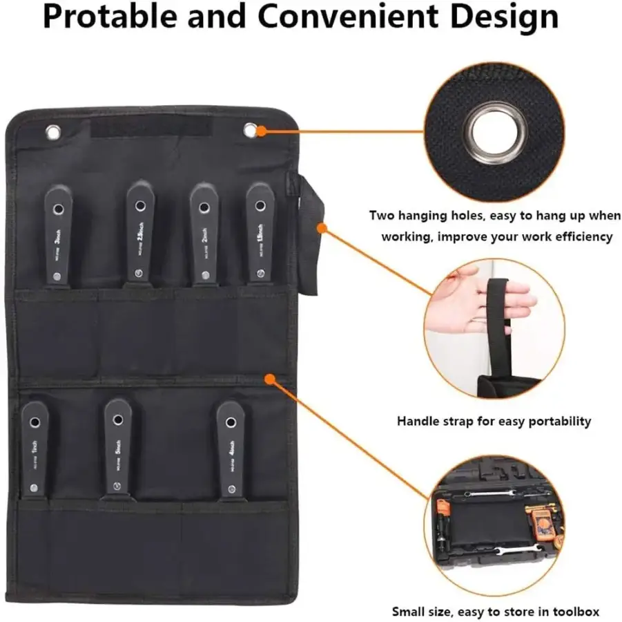7PCS Putty Knives Set Flex Drywall Knife Paint Scraper Kit 7 Sizes Soft Grip Handle Carbon Steel Blade Canvas Storage Bag Includ