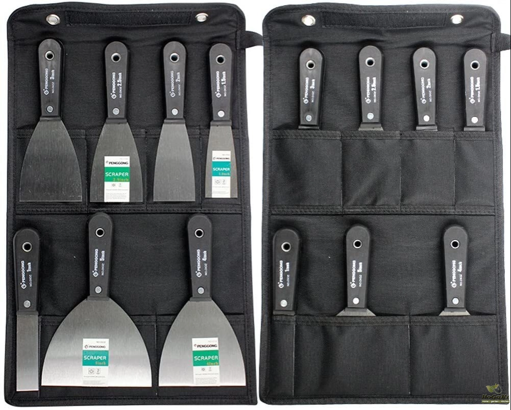 Compact & Portable Wall Filler Tool Set : Our wallpaper scraper hand DIY tools is designed with a conveniently foldable storage bag, which is organized the putty knives securely & tidy them up, making it easier for you to carry your tools.