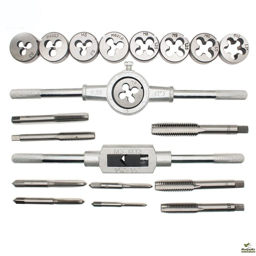 Tap and Die Set 8/12/20 Pieces Tap and Die Sets Threaded Plugs Tap Drills Metric Hand Tap Die Wrenches Threaded Hand Tools