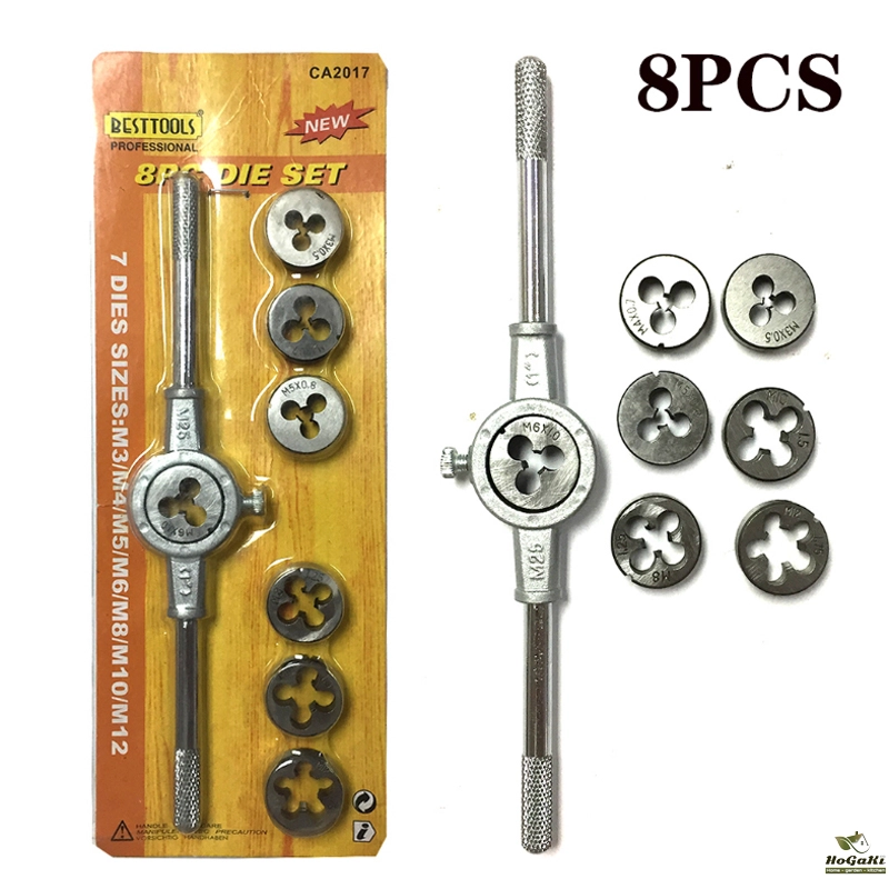 Multifunctional NC Tap and Die Set External Thread Cutting Tapping Hand Tool Kit Thread Screwdriver with M6 M7 M8 M1 Specifications: Item Type: Metric Tap Module Material: Alloy Steel Color: Silver Quantity of Tools: 8/12 Pieces/20 Pieces Suitable for : Hand Screwdrivers and Hand Tools Metric Taps
