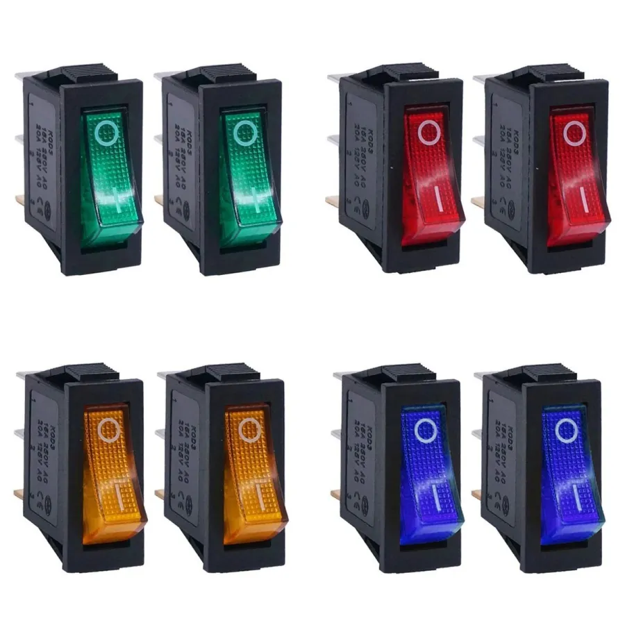 • 8Pcs SPST, ON-OFF, 3 Pins, Red/Blue/Green/Orange each 2pcs