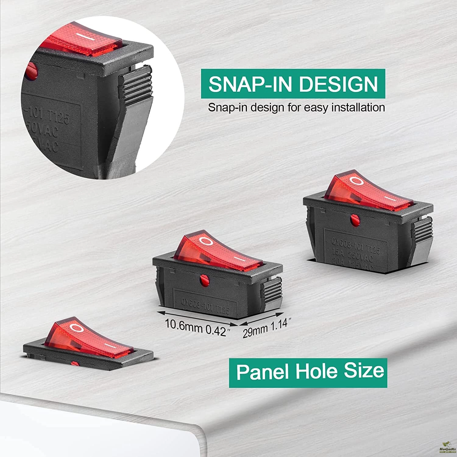 • 2.【10000 Times ON-OFF Operating Life】Made of high quality polyamide eP(Nylon PA66) , this sturdy mini boat rocker switch is born for anti-corrosion,anti-acid and high resistant with silver terminals.