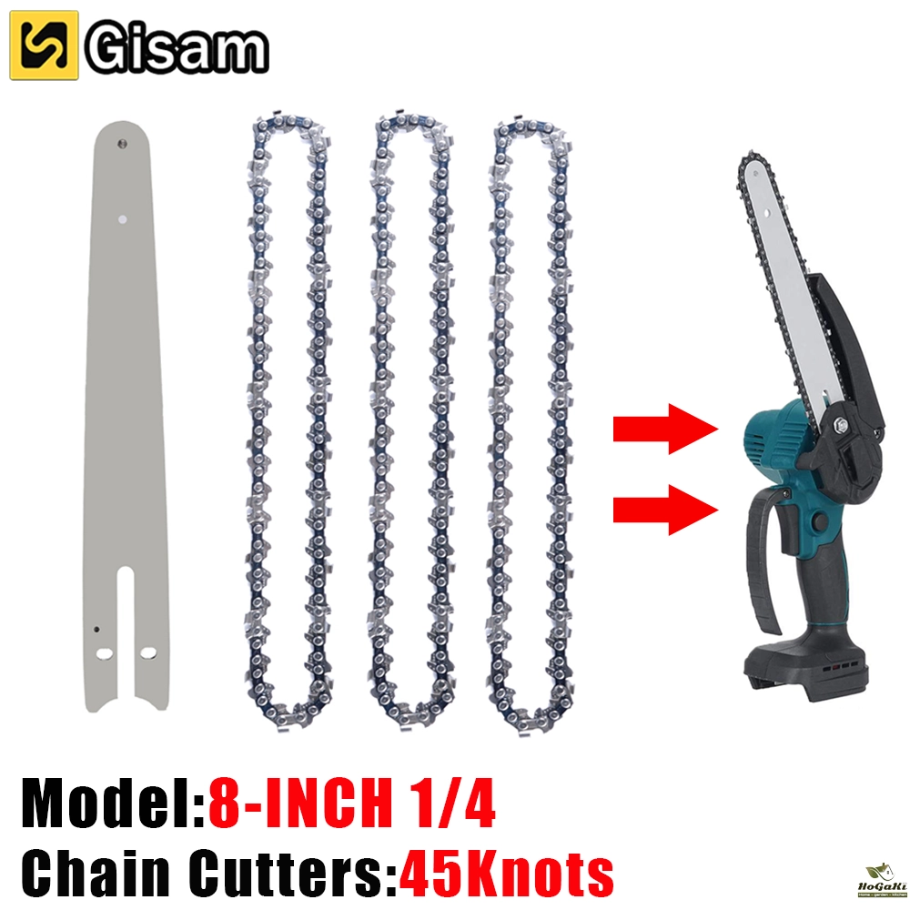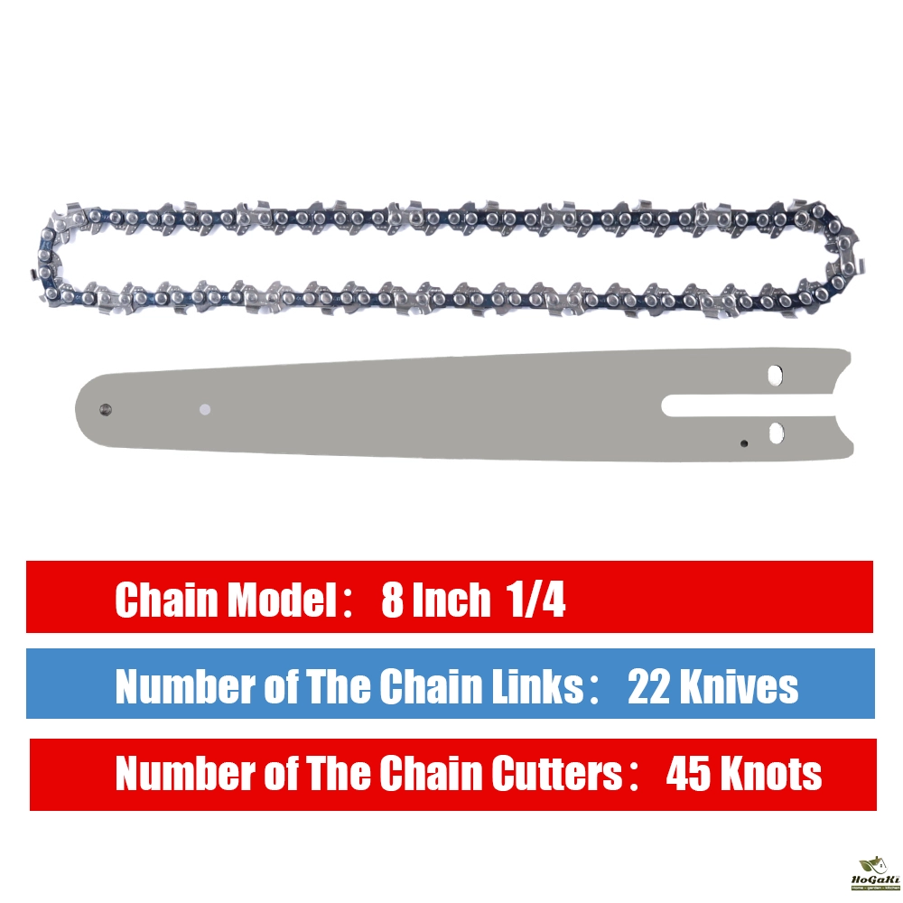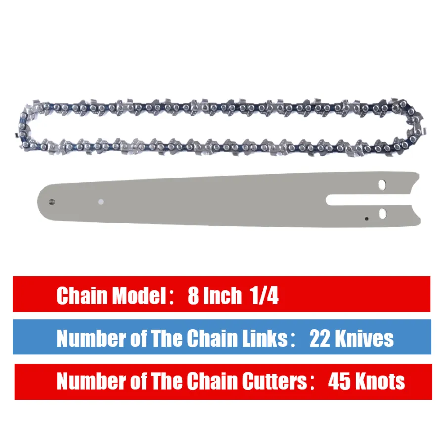8 Inch Chainsaw Guide Bar And Saw Chain Set 45 Drive Link Electric Saw 1/4''P for Brushless Electric Saw Wood Cutter Spare Chain