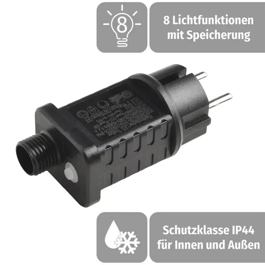 *Start a 6-hour timer. If the timer is activated, the light chain lights up for six hours and then switches off automatically. After another 18 hours, the string of lights automatically starts to glow again.