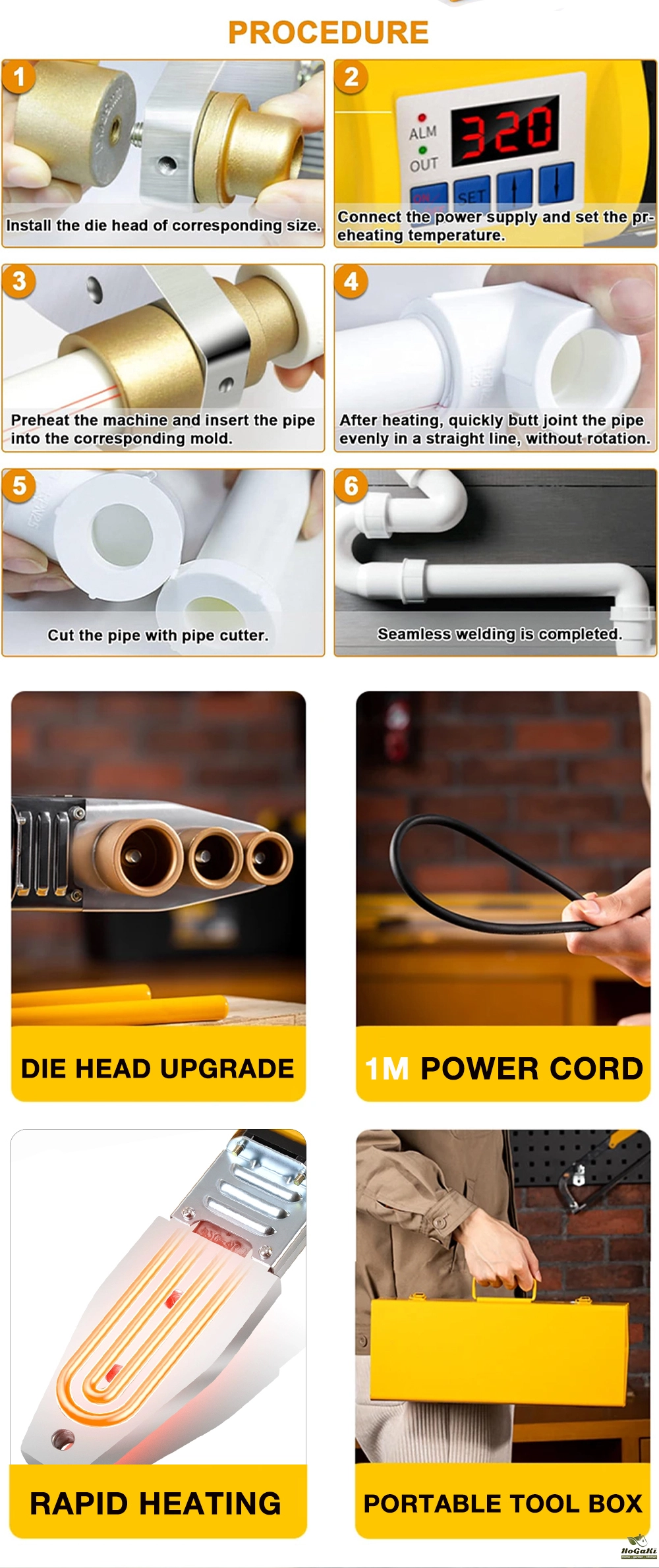 - For welding plastic pipes such as PP / PPR / PB / PE / PP-C pipe and etc.