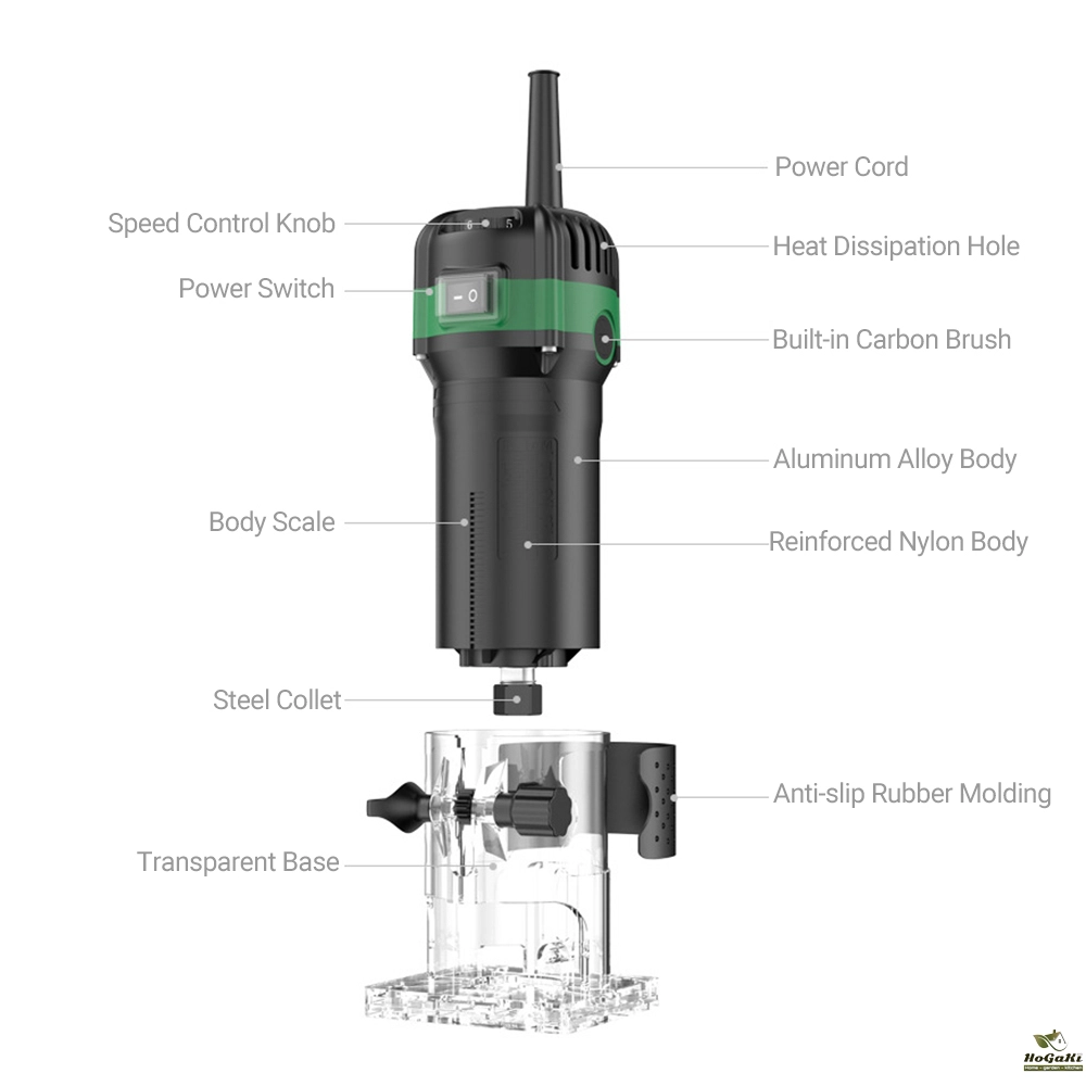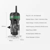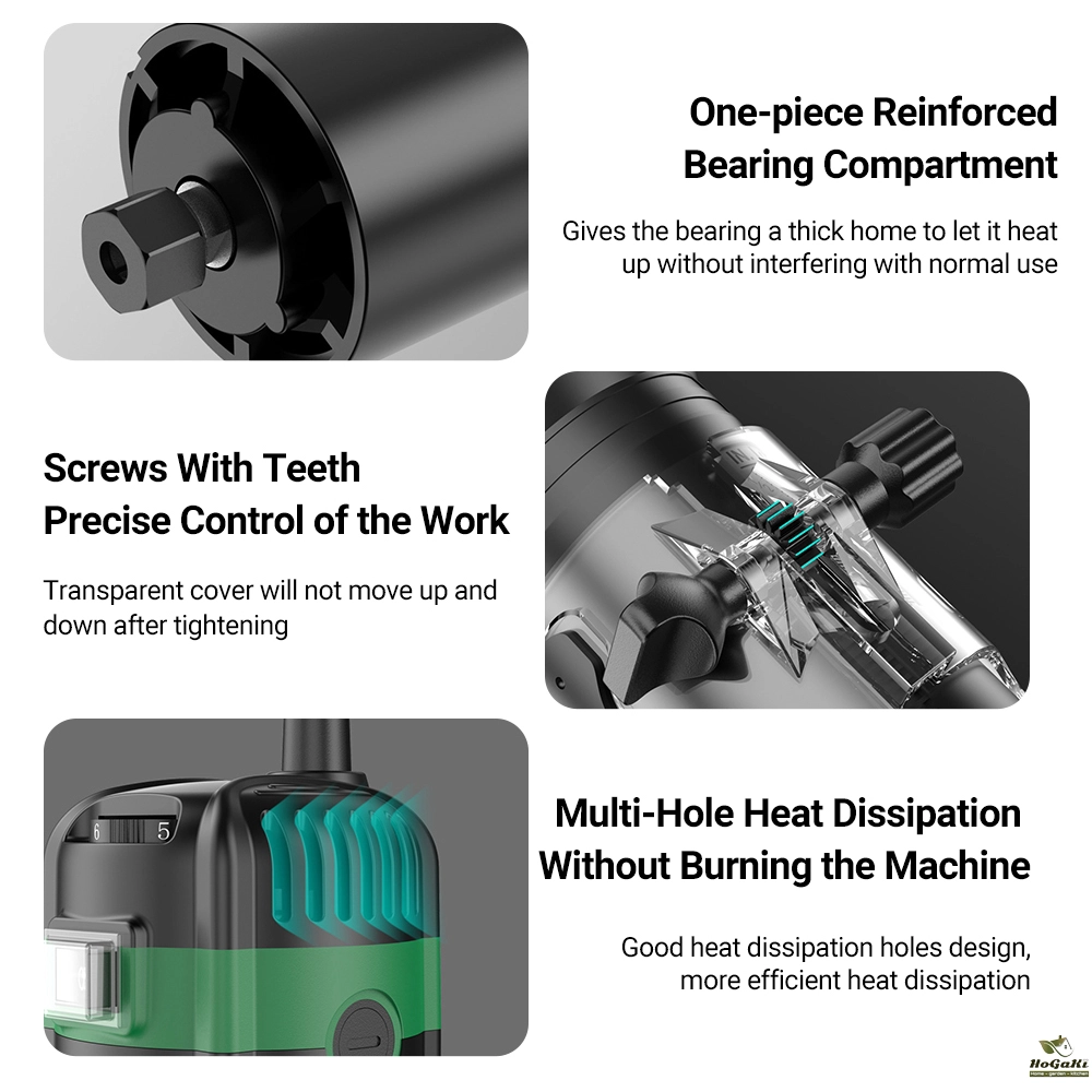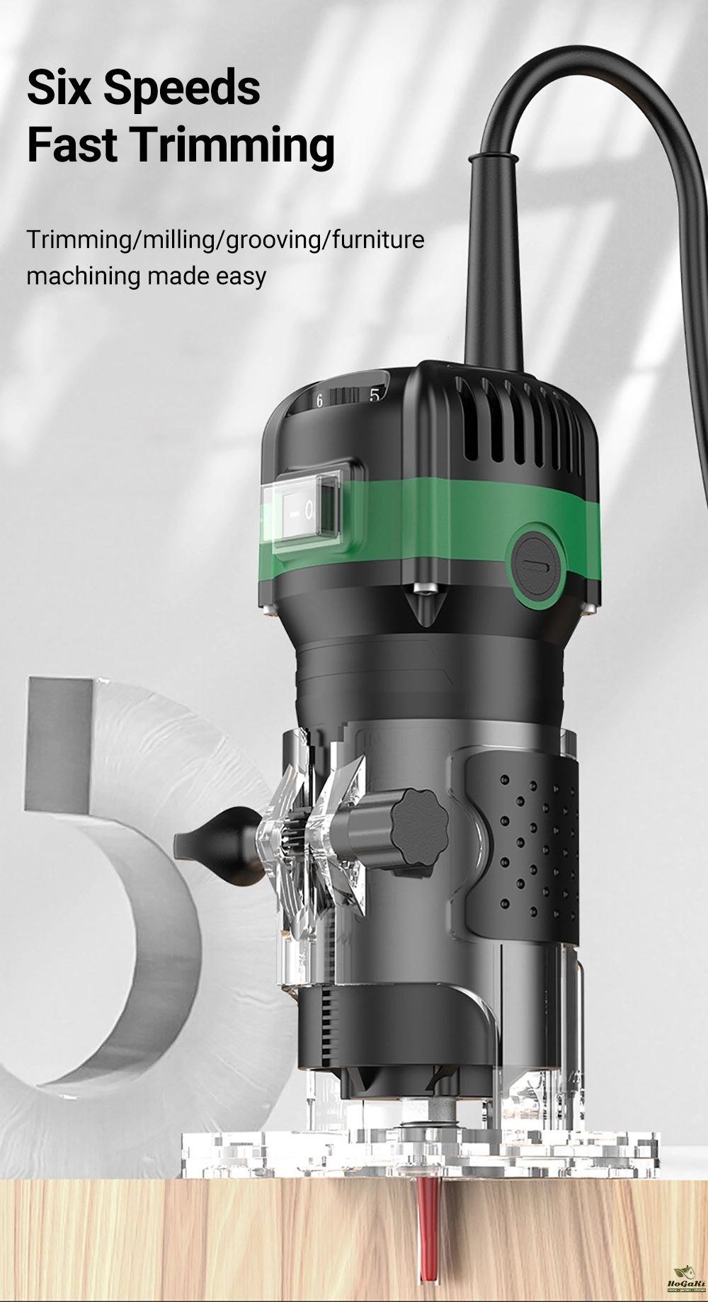 Large Speed Range: Compact router with variable speed control panel (0 - 33,000 RPM), 6 adjustable speed options can be matched with various applications, easy to use.