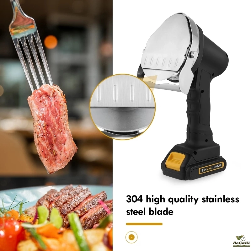 3. Wireless operation: This barbecue knife adopts 20V rechargeable lithium battery, which eliminates the inconvenience of the power cord and makes the meat cutting work more convenient. You can carry the meat cutting knife wherever you want to go.