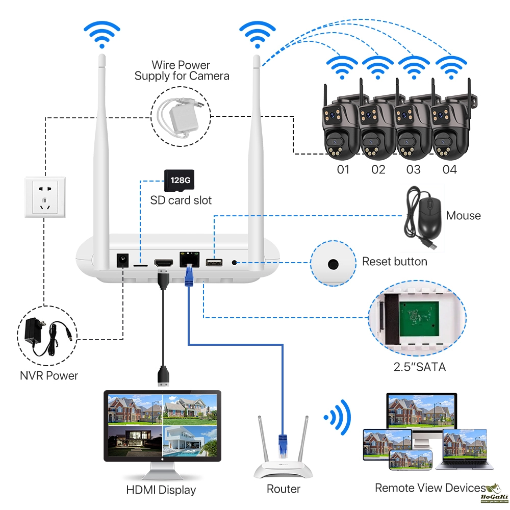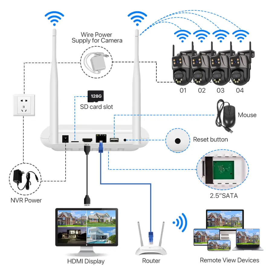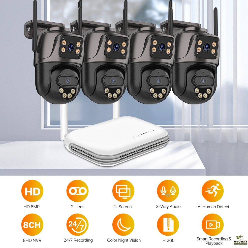 8CH Mini Wifi NVR 6MP H.265 Waterproof Dual Lens PTZ WIFI Security Camera Wireless