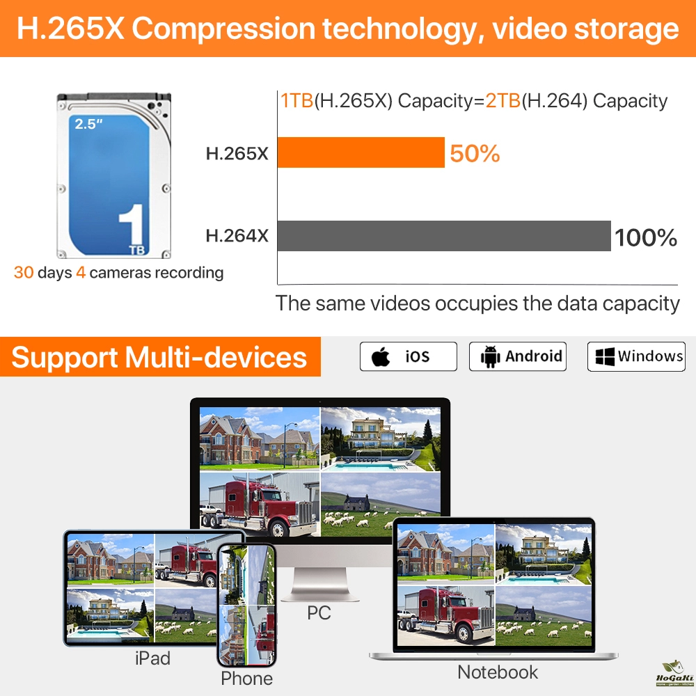 H.265X Compression technology, video storage