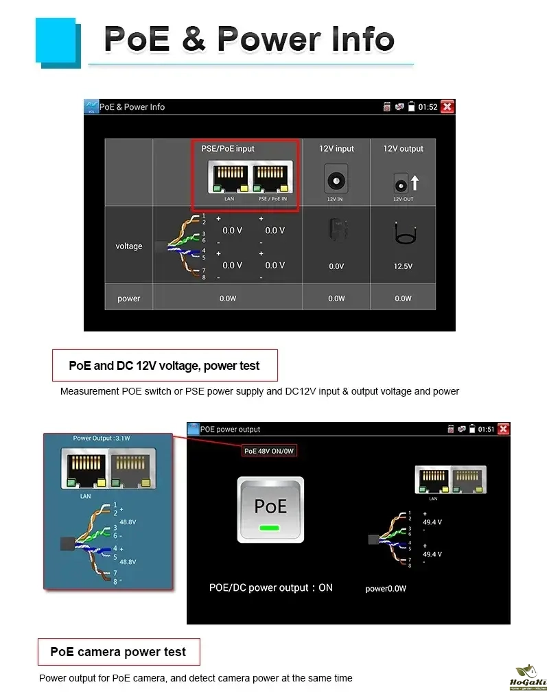 ● DC24V 2A, DC12V 3A power output, camera can be powered from tester