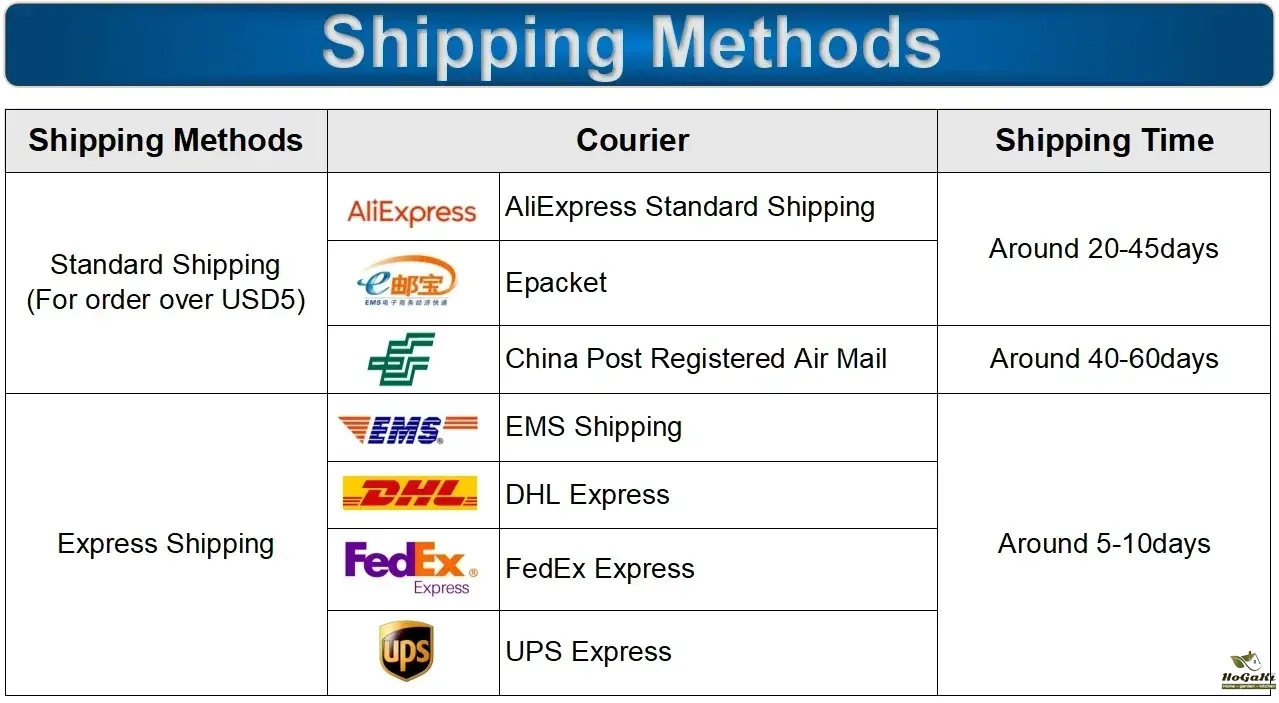 Packages from our warehouse in China will be shipped by ePacket or EMS depending on the weight and size of the product. Packages shipped from our US warehouse are shipped through USPS.