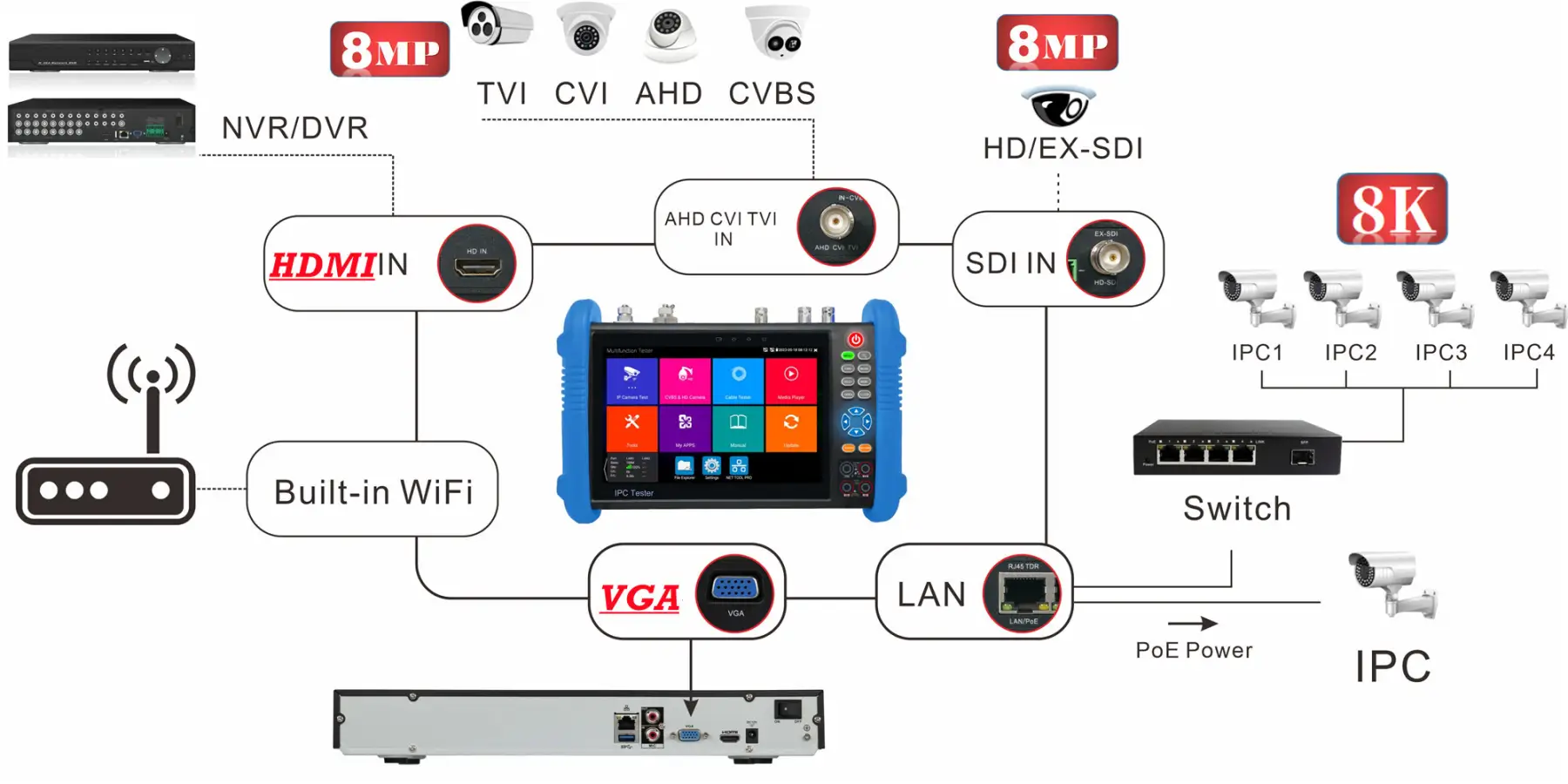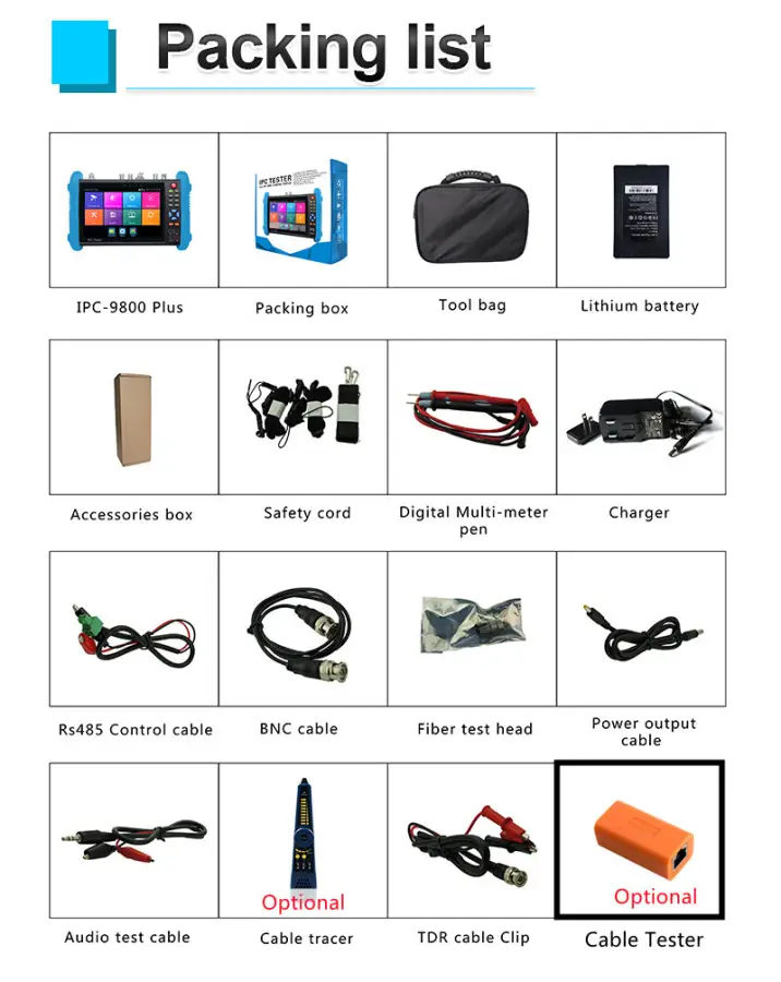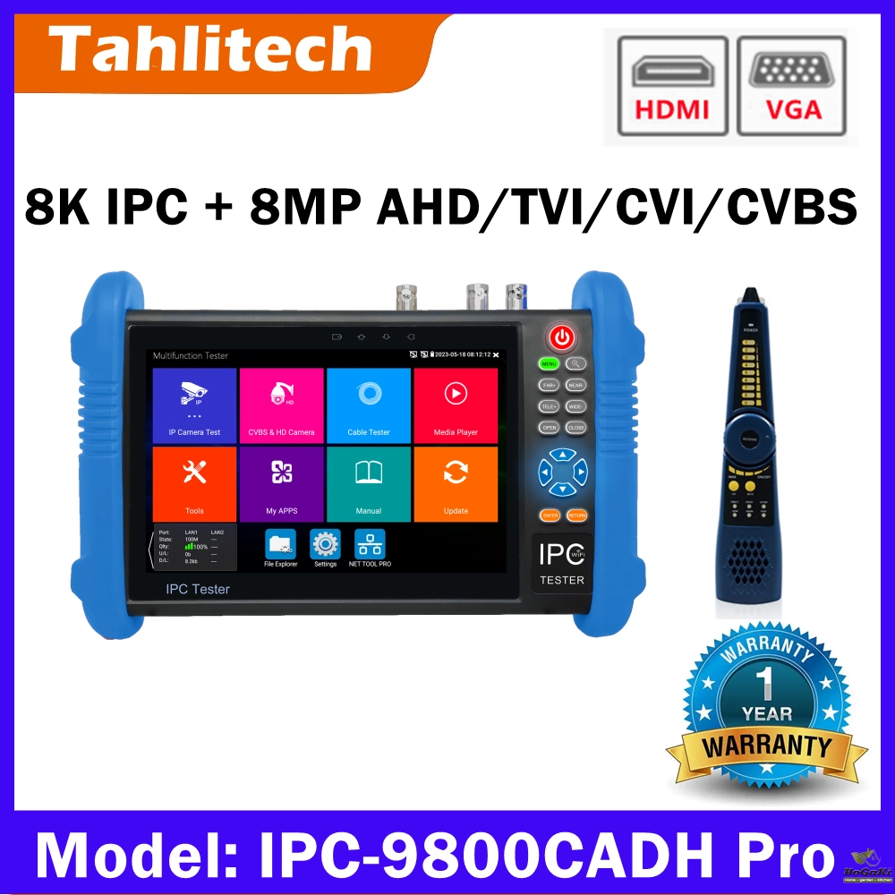 Newly upgraded 8K 7" CCTV IPC Tester IPC9800 Pro Test CCTV Camera 8MP AHD CVI TVI H.265 IP Camera Tester Wifi PTZ Cable Tester HDMI VGA CCTV Testing Tool