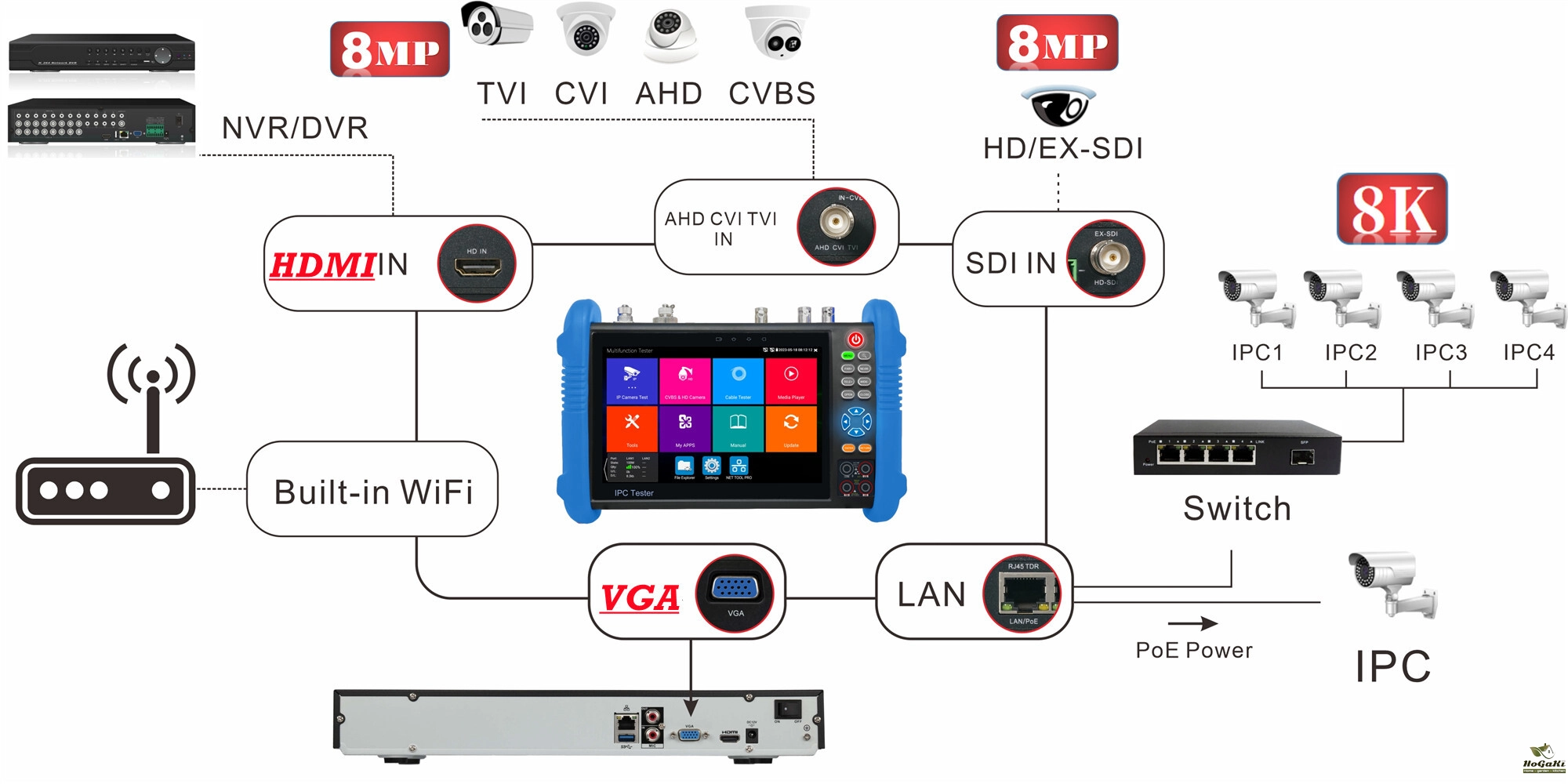 Model IPC-9800Pro supports IPC and CVBS Cameras Only, but NOT support AHD TVI CVI SDI Cameras.