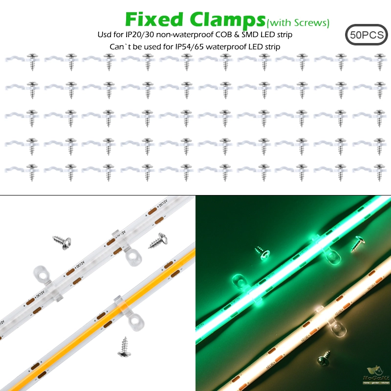 Fixing Clips: only for IP20/30 non-waterproof(no glue coating) SMD / COB LED strip, not for IP54/65 waterproof (one side glue coating) SMD LED strip.
