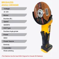 Electric Goddess DCG406 100/125MM Brushless Motor Electric Angle Grinder Metal/Wood Cutting Power Tool For Dewalt 20V Battery