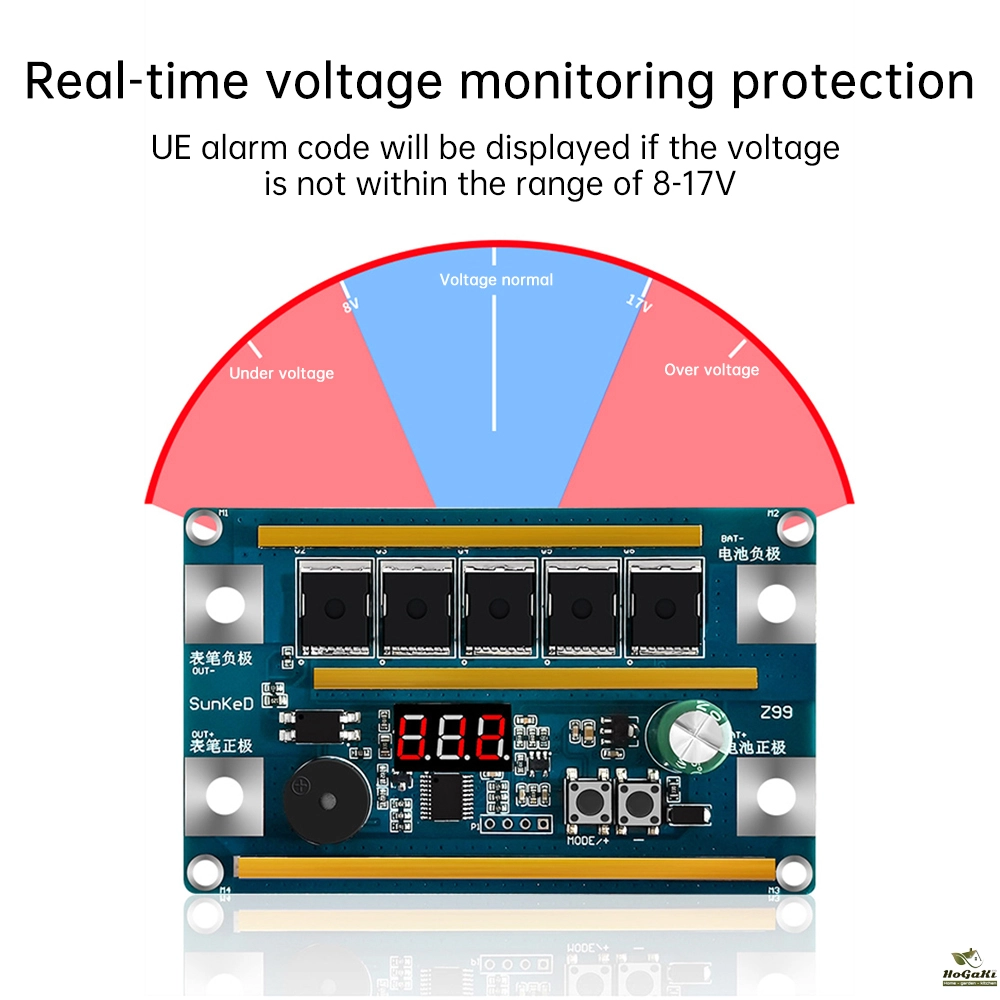 2. Real-time voltage monitoring protection, if the voltage is not within the range of 8-17V, then display UE