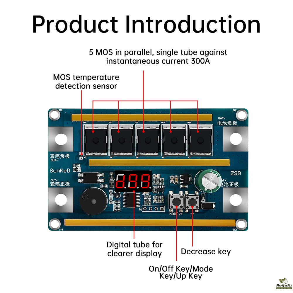 3. Real-time MOS tube temperature protection, MOS tube temperature exceeds 45 ℃, then display CE