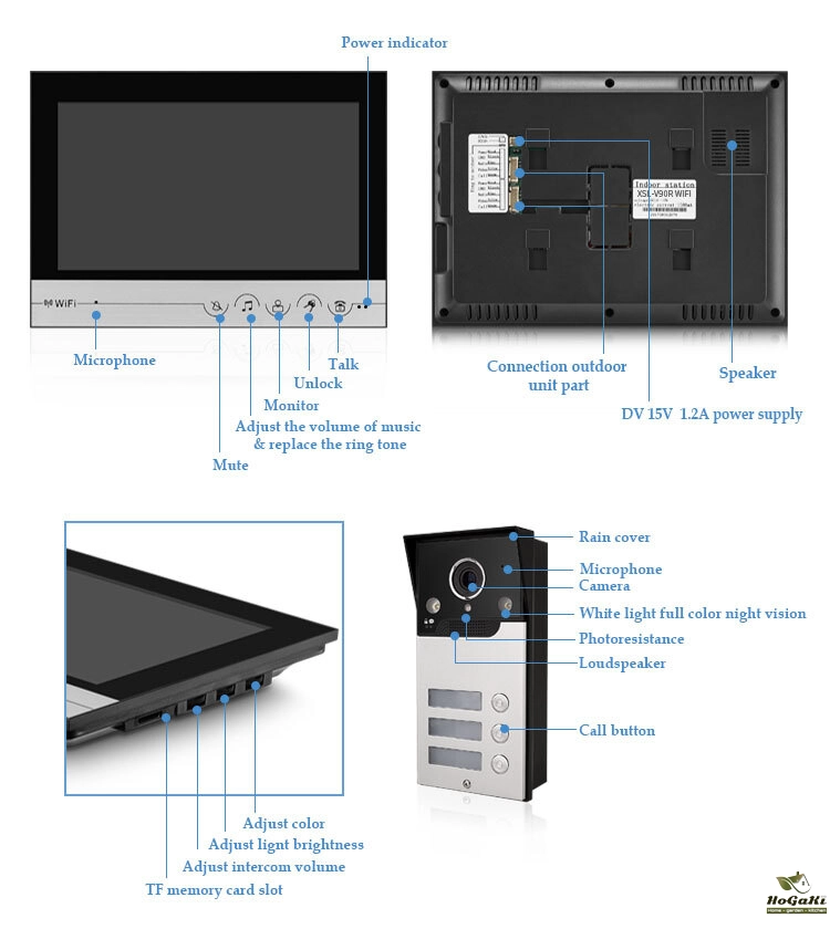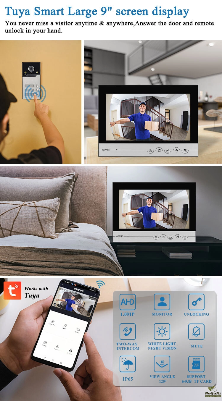 Tuya App WIFI and POE IP Video Door Phone System Sets Smart Home Doorphone Camera 1080P with Monitors for Villa Apartment Office