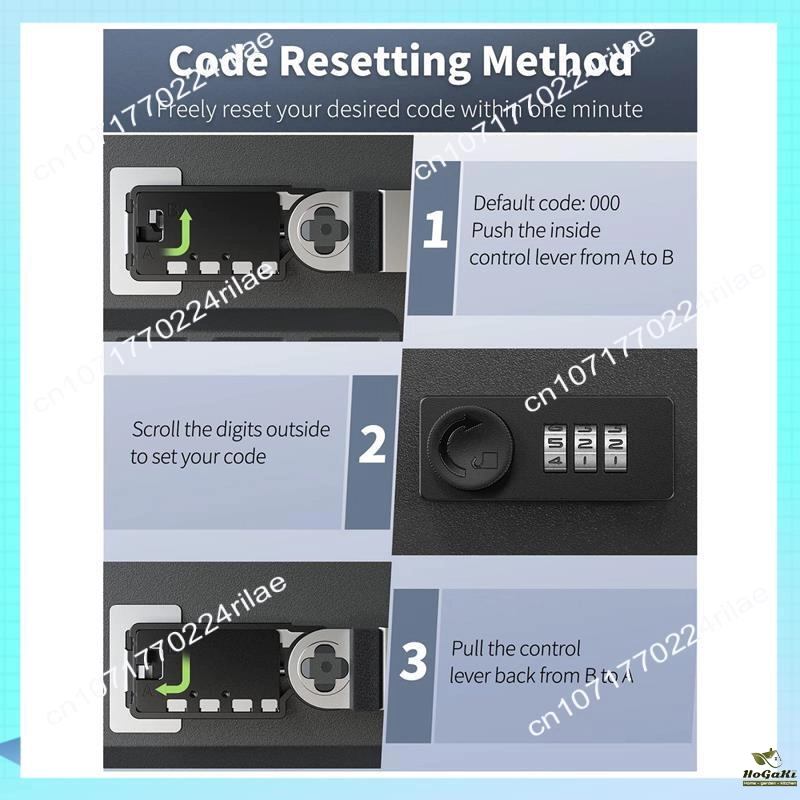 Resettable code: Initial code: "000". Push the control lever inside the cabinet from A to B, set the required code, and then pull the control lever back from B to A to complete the code reset;