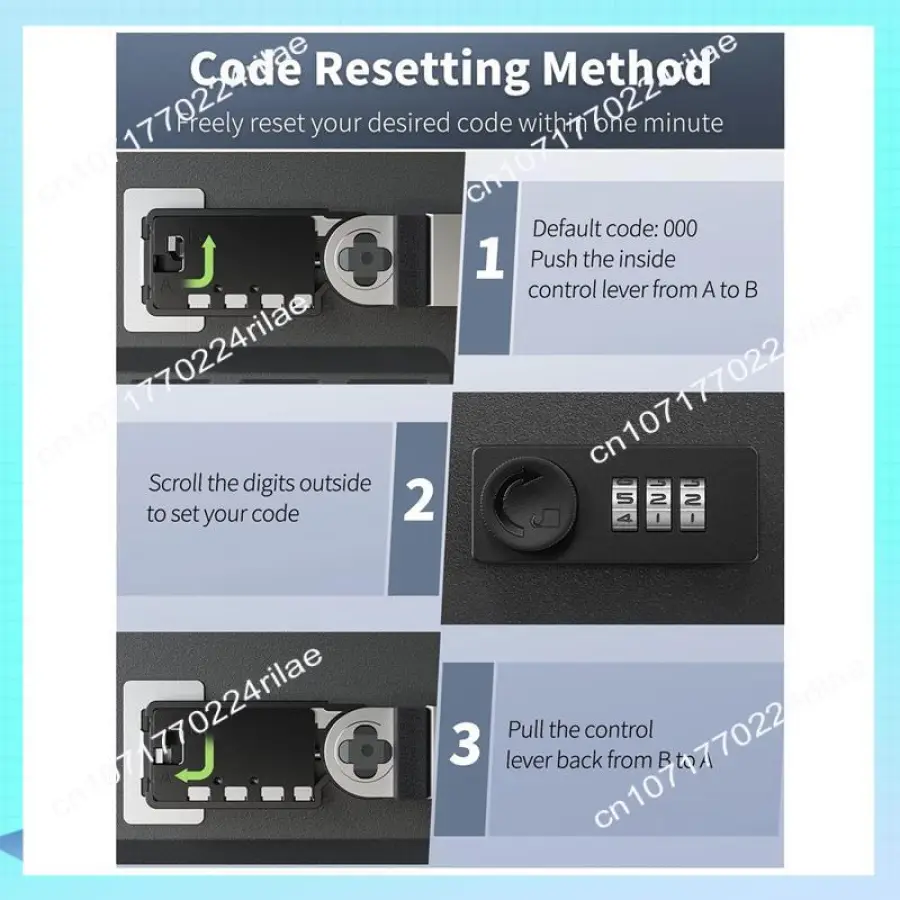 Combination lock: A 3-digit code lock provides 1000 combination methods. The internal control lever with password locking can effectively prevent accidental resetting