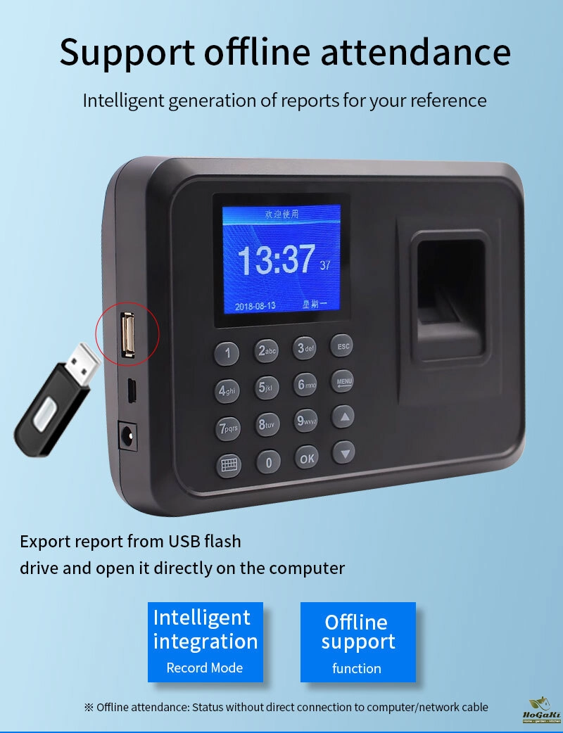 Password Biometric Fingerprint Attendance Machine Electric Time Clock in Recorder USB Staff Data Manage System Support Offline