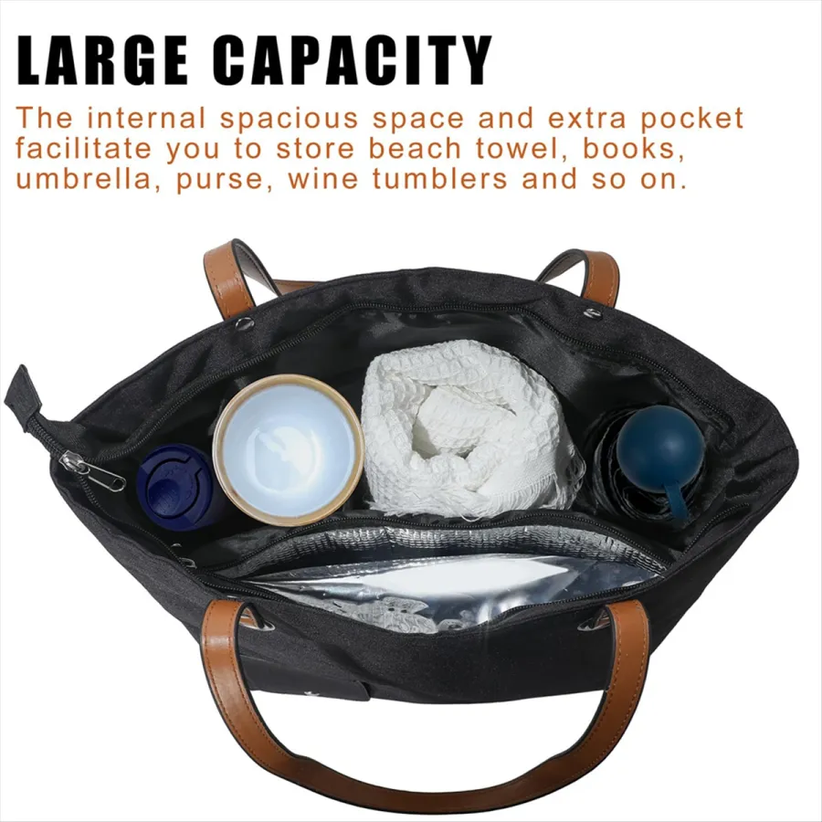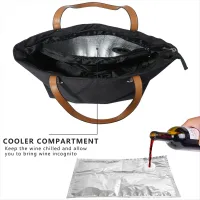 Leakproof and Insulated: Our wine tote bag comes with silver padded insulation to help keep your beverages nice and chilled for long adventures. Constructed with polyester material that helps to maintain its durability and provides a water exterior. The leakproof interior can prevent liquid permeating through and dirting the wine bag. Stylish Design: This black wine tote bag with brown straps looks so cute and elegant, suitable for people of all ages and both sexes. Great gift for women and men. Convenient and Portable: The portable wine cooler bag is designed to hold 2 bottles of wine or 1.5L drinks. Two come with this cooler tote bag, which makes it easy to takeout for house , BYOB restaurants, wine tastings, picnics at park. Perfect gifts for wine lovers. For More Than Just Wine: With separate and large compartments you don't have to limit yourself to just wine! This insulated wine tote bag allows you to carry snacks, cheese, fruits, magazines, daily accessories, etc. while keeping them organized making it perfect for picnic trips, camping, beach and more. Colour: Black Material: Polyester Package Contents: 1 x Wine Tote Bag Only the above package content, other products are not included. Note: Light reflection and different displays may cause the color of the item in the picture a little different from the real thing. The measurement allowed error is +/- 1-3cm.