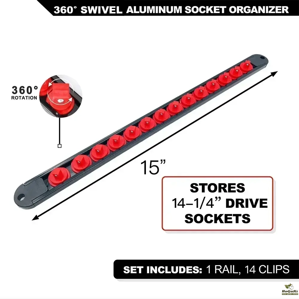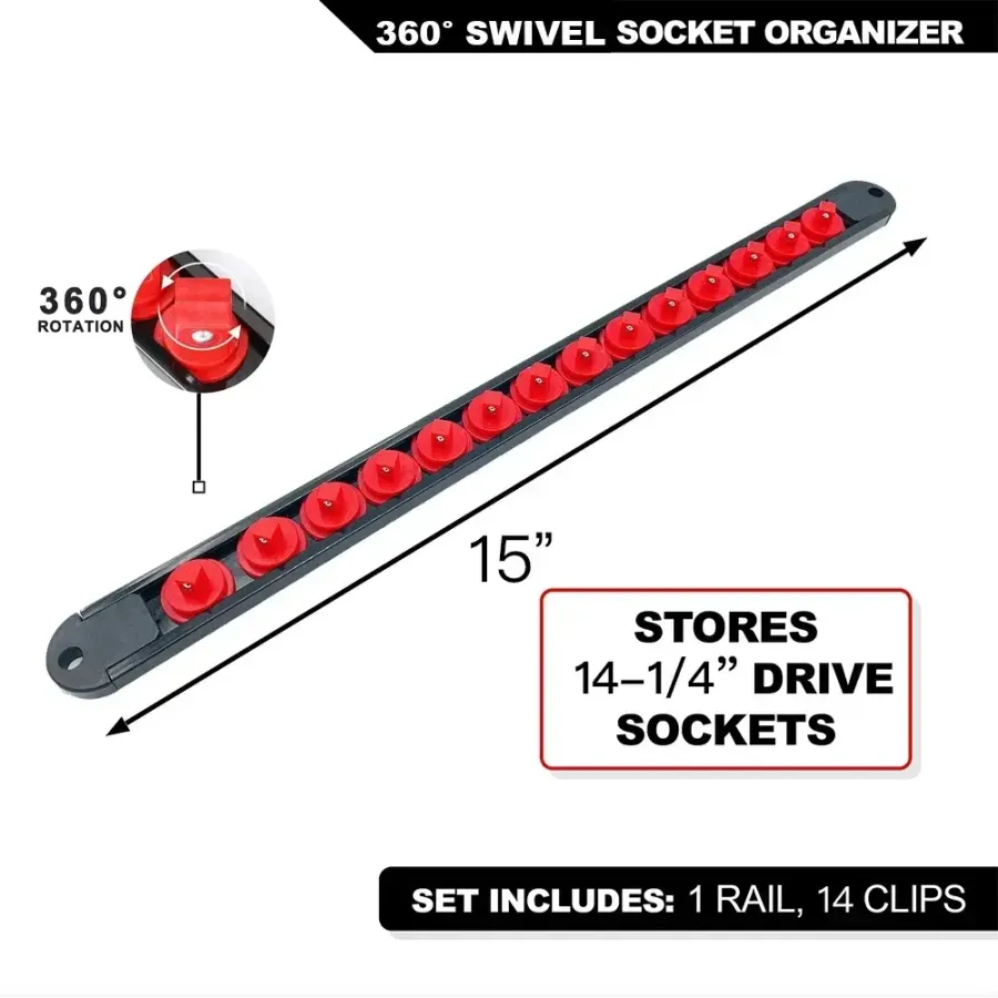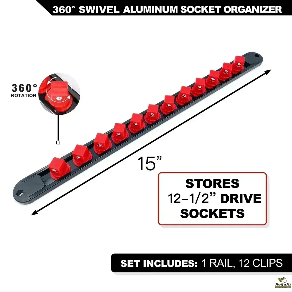 ABS Socket Organizer, 1/4-Inch 3/8-Inch 1/2-Inch, 360° Swivel Premium Quality Socket Holders