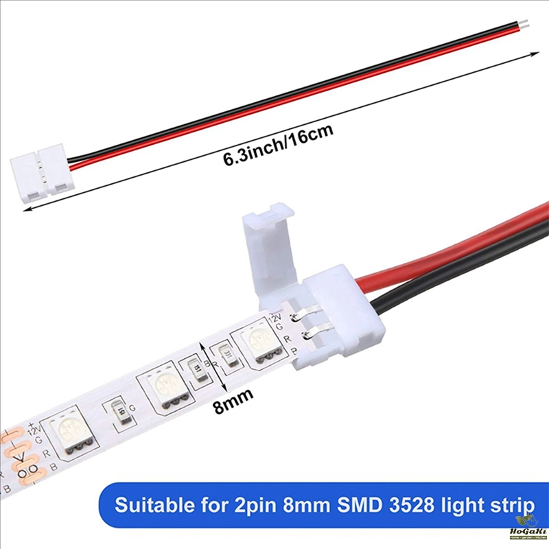 Wide rang of usages: solderless connectors kit is compatible with most 8 mm wide SMD 3528 2835 single color LED strips; Please note that it's not suitable for high intensity 120 LEDs/M strips