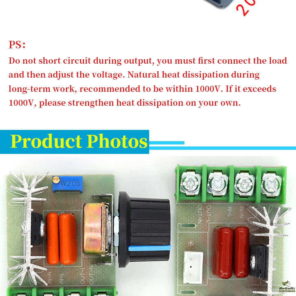 This pressure regulator with two-way high power silicon controlled, potentiometer have nuts, can use not need add any components, very convenient and practical